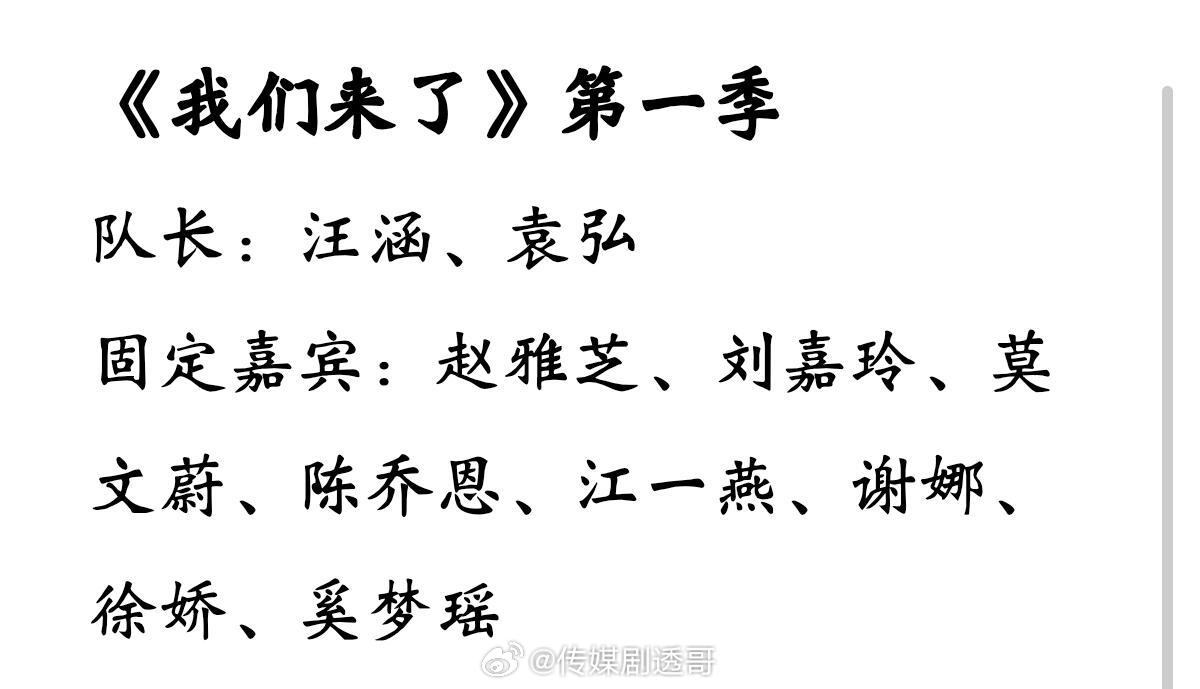 固定嘉宾:关之琳、陈妍希、宋茜、蒋欣、唐艺昕、沈梦辰