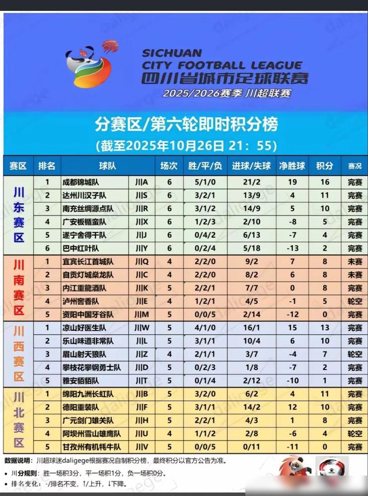 川超最新积分榜出炉(截止2025年10月26日)。成都还稳稳坐在第一把交椅上,凉山紧追第二,这排名看着挺稳,但仔细一琢磨,悬念可不少——上轮成都和遂宁踢了个平手,好多球迷都在念叨“是不是故意留着劲?”我倒觉得,可能两队都踢得太谨慎,毕竟后面还有硬仗。 要说这轮最让人惊喜的还得是凉山。主力去全运会、俩射手被禁赛,这换一般队早乱套了,可人家替补里冒出个徐元绩,带着队伍一路赢。关键是防守硬得很,到现在就丢了一个球,这韧性够看!下一轮成都轮空,凉山要是抓住机会,说不定能把第一抢过来,这戏码多带劲? 达州和绵阳并列第三,看着是第三,可指不定哪天就往上窜。现在这川超啊,真是每轮都有新故事。成都虽稳但不绝对,凉山逆境突围,后面还有追兵,这联赛才叫有看头!咱就盼着接下来的比赛更精彩,特别是徐元绩那小伙子,多来点高光操作,让咱们球迷过足瘾!