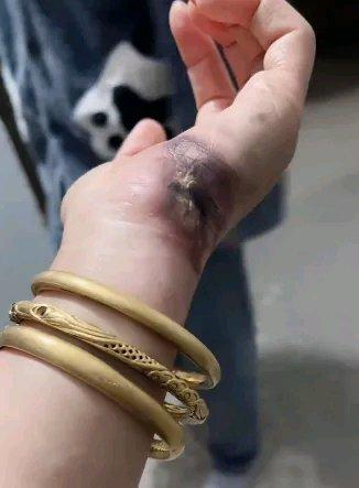 安徽宿州的刘女士可真是倒霉透顶了。10月25日,她给淋了雨的电动车充电,掰开充电口盖子时不小心碰了一下,一瞬间手就烧黑了,感觉一块肉都熟了,金手镯还被电掉两块,充电口那插的地方都有熔化的金子。 消防员做过实验,用导电材料接触48v电动自行车充电口会短路,产生大电流和高温,造成电灼伤。金是良导体,刘女士戴金手镯,碰到充电口就危险了。消防提醒,充电别把金属误插充电口,雨天要遮挡充电设备。骑电动车方便,但充电安全可得多上心啊!
