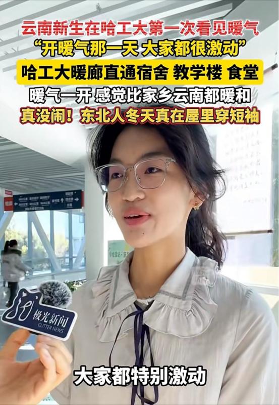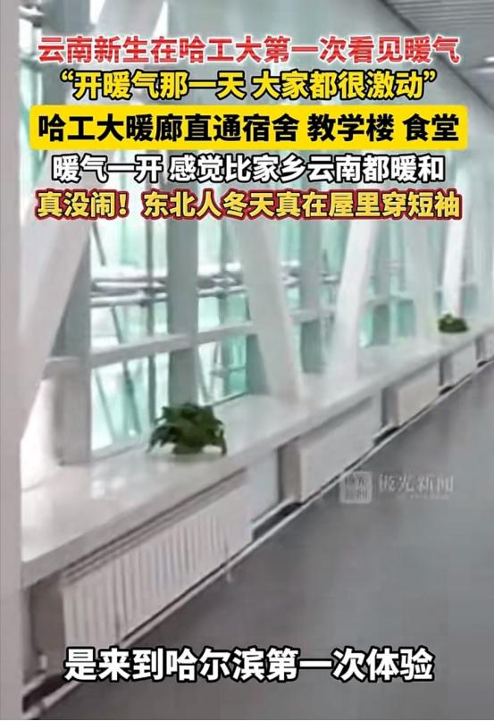 万万没想到哈工大以这种方式火了!近日,哈工大开启暖气第一天,有来自云南的学生对着媒体坦言:“开暖气第一天,大家都很激动,感觉比家乡云南都暖和!” “原来北方人过冬真的可以只穿短袖!”这句惊叹,来自一位第一次在北方过冬的南方姑娘。 10月20日是大东北的供暖日,哈工大的暖气片准时热了起来。让人没想到的是,在各大高校竞争激烈的今天,哈工大居然靠“供暖”出了圈。 对于南方孩子来说,从小到大没见过雪、更没享受过暖气,甚至很多南方家庭的空调,都没有制热功能。所以当南方学生第一次感受到暖气后,都不由自主的发出感慨:“这哪里是供暖?分明是寒冬里的‘续命福利’!” 这些第一次在北方过冬的新生们,总算见识到了“暖气”的威力。而北方学生则手把手传授暖气的诸多用途。这种暖心的互动,让南方学生直言:“暖气不光暖了身体,更暖了心!” 然而,真正让网友直呼羡慕的,是哈工大独有的“暖廊系统”。根据学校官方信息,暖廊从2022年就开始分期建设,2024年8月四期工程竣工后,总通行长度已达4190米,形成覆盖一、二校区核心区域的“空中交通网”。 这套系统的诞生,深刻体现了哈工大这所顶尖工科院校“用技术解决实际问题”的硬核精神。北方高校冬季供暖是标配,但如何解决学生在不同建筑之间穿梭时忍受极端寒冷的问题,却长期存在。 哈工大没有停留在“让学生忍一忍就过去了”的思维上,而是选择用强大的工程能力,打造一个系统性、一体化的解决方案。这背后是强大的建筑、暖通、材料等多个学科学术实力的支撑,真正做到了以人为本。 对此,哈工大学生最有发言权:“即使外面零下十几度、大雪埋过脚脖子,也完全不用担心。因为从宿舍到教学楼,廊内依旧温暖如春。” 供暖这事看着简单,但能把供暖做到极致的,非哈工大莫属。当很多高校还在纠结如何打造“网红地标”时,哈工大却把钱和精力花在了最实在的学生需求上。这无疑是最有说服力的招生宣传。 毕竟对学生来说,再顶尖的科研设备、再漂亮的校园风景,都不如寒冬里的一抹暖意来得真切。 这所工科强校用行动证明,真正的实力不仅要体现在学术排名上,更要落实到对学生衣食住行的用心里。 此事被曝光后,网友的反应说明一切:“这才是顶级高校该有的样子!”“羡慕这种把学生放在心上的温暖。”哈工大没有刻意制造话题,却用实实在在的行动赢得了全网好感。对此你有什么看法?欢迎在评论区留言讨论。北方供暖 南北差异 信息来源: 极光新闻|10月22日报道 文|墨海 编辑|史叔