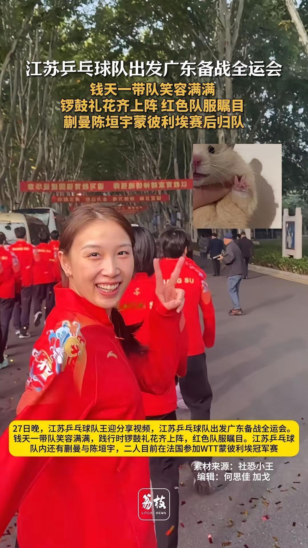 哈哈,钱天一走进了“红运”中![比心][大笑] 全运会还没有开战,江苏队的钱天一已经“红”得没边没际了。[捂脸][大笑] 昨天晚上,江苏队想讨个好彩头,全队上下身着红装,锣鼓礼花齐上阵,一派喜气洋洋地出发广东备战全运会,十分引人瞩目。不知道的,还以为江苏队在庆祝夺冠了。[大笑][大笑] 尤其是漂亮的钱天一一笑,引来了网友的精彩评论,回眸一笑百媚生,球还未打人先红![捂脸][大笑][笑哭] 钱天一