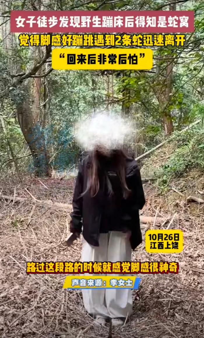 女子胆大太了,“在眼镜王蛇家门口蹦迪”。 将由枯叶、藤蔓覆盖的松软地面误认为“天然蹦床”,李女士蹦跳后不久,就有两条蛇(据描述可能为剧毒蛇)从旁窜出。这直接证明了该区域是蛇类的活动核心地带。眼镜王蛇等毒蛇在中国南方山区并不少见,其毒液毒性猛烈,一次咬伤足以致命。 李女士明确提到山中无信号,这意味着一旦被咬,无法第一时间拨打急救电话求救。 此次事件最终以李女士“后怕不已”但未受伤告终,这带有极大的侥幸成分。只要当时有任何一个环节发生变化(如踩到蛇、被咬一口),后果都将不堪设想。