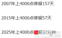 今天终于上4000点了,虽然只呆了57分钟,但已经算猛男了。这是A股历史上第三次上4000,第一次是2007,那是属于70后的牛市;第二次是2015,那是属于80后的牛市!这是再次过4000,90后第一次大牛市要来了吗?不过跟前两次躁动的牛市不同,这次大家安静了很多。吹牛市的少了,主要是底气不足。万一亲戚朋友问你:都4000点了,你炒股一定赚翻了吧?你看着还在3000点的股票账户,就尴尬死了。今天大家都在庆祝4000点,但你们赚钱了么。(爱股君)