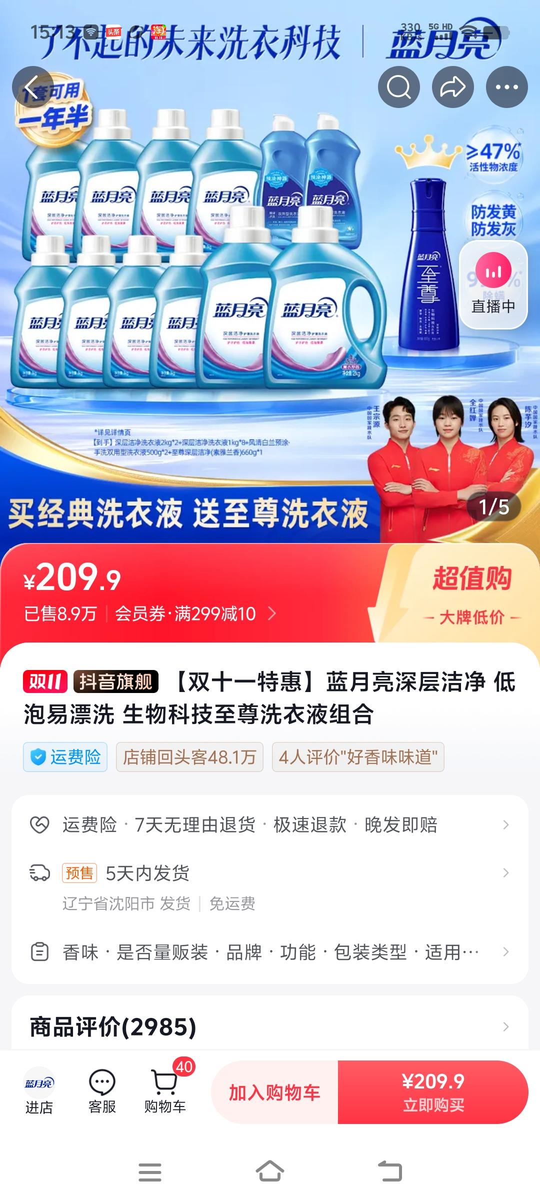 有些促销商品看着划算,可是我琢磨一下,我好像还是亏了,还亏的挺多! 今天在直播间买的蓝月亮洗衣液,因为平时一直用这种洗衣液,它不仅是味道很柔和,而且洗衣服确实很透亮,毕竟大厂家信得过! 去年买的一大瓶,用了一年多,最近发现洗衣液已经不多了,今早打开手机发现蓝月亮直播间官方旗舰店促销花了159.9买了四斤装的九大瓶,再加上两个随身携带的简装款,还有一个是至尊的洗衣精华一共是12瓶,本来是200多的,有有了一张平台券,又省了50多, 按照在商场购买的价格来说,确实挺划算的,我去年买一瓶就花了30多, 如果按照超市的价格九瓶就应该是差不多300, 划算是划算,下单之后我就有点担忧了,买了这么多的洗衣液,猴年马月能用完了,再说洗衣液的保质期是几年呢? 不过还好,既然优惠了,买了这么多就送人吧, 送婆婆两瓶,姐姐两瓶,女儿两瓶,这样我剩下的三瓶加两个小包装,再加上一个至尊精华,这样就不愁用不完了! 这样囤货购买确实方便了大家,可是对于我而言,还是高消费了,不然一瓶30多,我159可以买了5瓶,这样我一年用一瓶,我够用5年的,我把这些都送给大家的话, 我用的不到五年。 有的时候多买少算,其实自己并没有节省开支,不过这样会增加亲情,也是不错的!