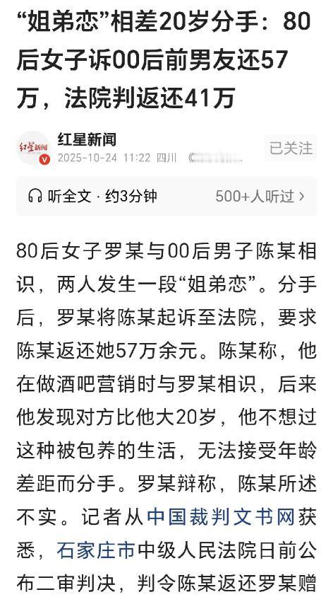 石家庄,25岁的陈某与45岁的罗某在酒吧相识,展开了一段跨越20年年龄差的姐弟恋。起初,陈某和罗某的关系看似美满,罗某为了表示真心,先后给陈某转账57万元,并且通过转账520、1314等特殊金额的方式表达她的爱情。然而,当陈某逐渐意识到年龄差距带来的心理负担,提出分手并拒绝继续承担婚姻责任时,罗某愤而将他告上法庭,要求返还这笔金额。法院经过两次审理,最终判决陈某返还部分款项。 陈某,出生于2000年9月,年轻帅气,身为酒吧的一名营销员,凭借着讨人喜欢的外表和能言善语,吸引了许多女性顾客的关注。2020年8月,一位年约45岁的女性顾客罗某走进了他所在的酒吧,罗某身材保养得当,看起来比实际年龄要年轻得多。她很快对陈某产生了好感,而陈某也将她视作一个重要客户,两人开始频繁接触。罗某经常在酒吧里花大手笔买酒,逐渐向陈某展示了她的真心,并在短短时间内对陈某表达了强烈的爱意。为了照顾陈某的生意,罗某多次转账给他,金额不小,并且在一些特别的时刻,送上了520、1314这些具有象征意义的数字,表示她的真诚。 然而,随着时间的推移,陈某开始发现,罗某的心意远不止于客户关系那么简单。尽管她年纪较大,但她的经济条件和对陈某的投入让陈某开始感受到一定的心理压力。经过深入了解后,陈某才得知罗某比自己大了20岁,这让他心生不安。2021年3月,陈某开始与罗某保持距离,并逐渐感到无法接受这段关系中的年龄差距。随着感情逐渐冷淡,2021年11月,陈某正式提出分手,给出的理由是他还年轻,不愿被束缚于这段关系中,尤其是在感受到罗某的经济压力后,他决定结束这段感情。 然而,罗某对陈某的感情并未因为分手而淡去,反而愈加愤怒。她认为,自己对陈某的投资和支持是出于结婚的诚意,而分手后,陈某应当返还她为维持这段感情所付出的所有财产,包括那57万元的转账。罗某坚持认为,陈某接受她的金钱帮助是基于建立婚姻关系的前提,而既然婚姻未能达成,她有权要求返还这笔款项。陈某则认为这些钱属于双方自愿赠与,并非有条件的赠与,因此拒绝返还。 案件进入司法程序,法院首先对这段感情的经济往来进行了认定。在审理过程中,法院明确指出,罗某转给陈某的57万元款项,虽然是她出于真心所做的经济支持,但考虑到双方在婚姻方面并未达成明确的约定和合同,这笔款项应视为附带条件的赠与,而非单纯的赠与。根据《民法典》第158条规定,赠与行为可以附带条件,若条件未达成,赠与人有权要求返还财产。 法院认为,由于双方未能结婚,且罗某明确表示这笔钱是用于结婚目的,因此,该赠与行为应为附条件赠与,符合《民法典》第657条关于赠与合同的规定,陈某有义务返还这笔钱。而在恋爱期间,陈某向罗某转账的100000元,则被视为双方之间正常的情感赠与,不属于附条件赠与,因此无需返还。 一审法院作出了判决,认为陈某应返还罗某470000元。陈某不服,提出上诉。上诉法院对案件进行了重新审理,进一步强调了赠与行为的性质及其法律效力。法院根据《民法典》对附条件赠与的解释,最终判决陈某返还罗某410000元。 这起案件涉及到复杂的赠与法律关系。在双方的交往过程中,罗某向陈某转账的57万元金额明确表明了她的婚姻意图。根据《民法典》及相关司法解释,赠与合同若带有条件,在条件未成就时,赠与方可以要求返还财产。这一点为罗某要求返还57万元提供了法律依据。法院根据此条文作出了返还部分款项的判决,显示了在复杂的感情和财产纠纷中,法律如何合理分配责任和权益。 然而,这一判决也揭示了感情中的经济纠纷可能带来的问题。在许多情况下,感情投入和经济支持往往是伴随彼此的,尤其是在现代社会中,恋爱关系中的经济支持和情感投入往往交织在一起。罗某的转账,虽然出于真心,但从法律角度来看,这一行为并非无条件赠与,而是基于婚姻目的的有条件赠与。因此,在未能实现婚姻目标的情况下,赠与款项的返还成为了合理的法律诉求。 从社会角度来看,这类案例不仅涉及到爱情的真诚与变故,也提醒了公众,在处理感情中的财务关系时,必须明确双方的经济责任和意图。若涉及到重大金钱往来,应当尽量通过书面协议或其他方式明确赠与的目的、条件及未来可能的法律后果。这不仅有助于保护自己的合法权益,也能避免因情感纠纷引发不必要的财产争议。