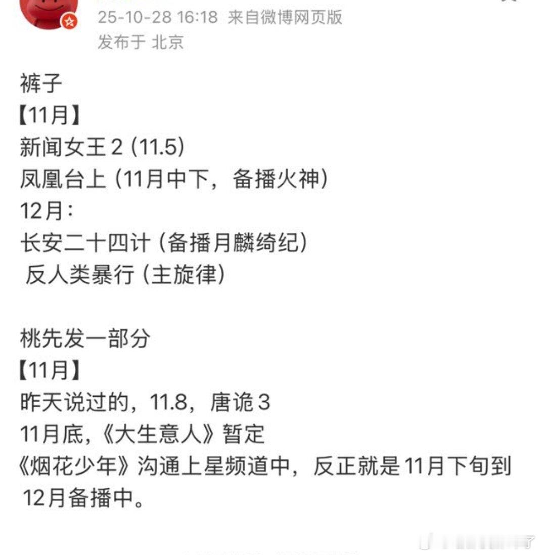 2大平台11月待播剧排播🍉