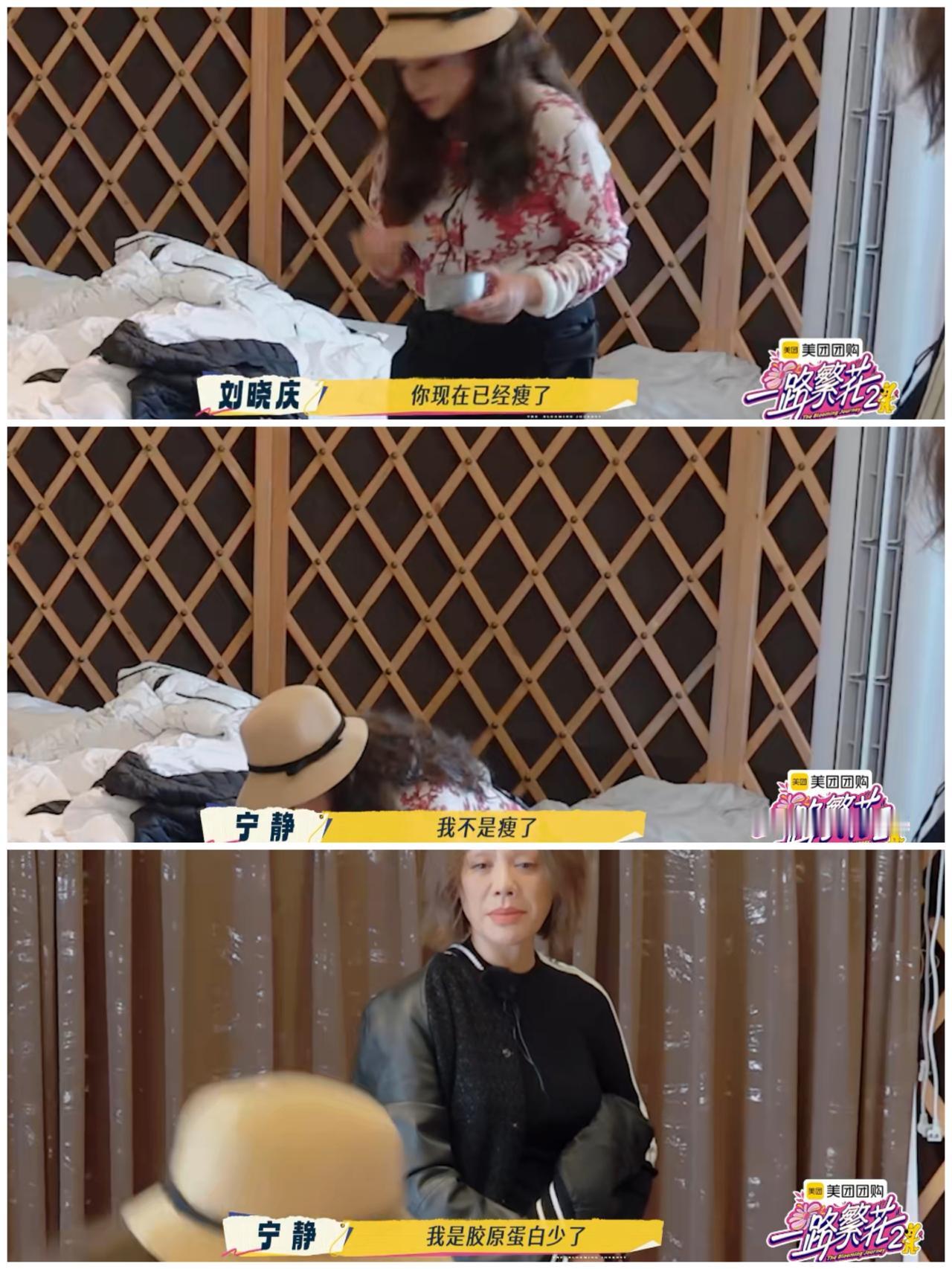 宁静一面错愕, 宁静“撒谎”, 刘晓庆一点都不给面子, 当面指出。 宁静刚准备离开餐桌, 刘晓庆马上把宁静叫住。 宁静一脸错愕, 不知道自己又做错什么事情了。 刘晓庆指着宁静那份原封不动的米饭, 直接说“你不是喜欢吃米吗?” 宁静想不到自己随意说的一句 “喜欢吃米”, 当下就把自己“埋了”。 宁静只好解释自己当下减肥。 刘晓庆立刻夸宁静瘦了, 没有想到宁静不吃这一套, 狡辩自己不是瘦了, 是胶原蛋白少了。 宁静坦言人家同样1米六六都是八九十斤, 自己都一百一十斤呢。 看到刘晓庆想要宁静吃米饭, 而宁静各种狡辩的样子。 就像一位操心的老母亲, 在管教自己叛逆的女儿那样。 马思纯身高一米七零 也是一百多斤, 人家一点都没有顾及, 该吃吃该喝喝, 完全没有减肥的意思。 马思纯也是跟上刘晓庆的心态了, 一点都不焦虑自己的身材, 一顿都不少吃, 反而张晚意想着要减肥。 网友都看多了白幼瘦, 像马思纯,刘晓庆这样的微胖身材 会觉得眼前一亮吧。