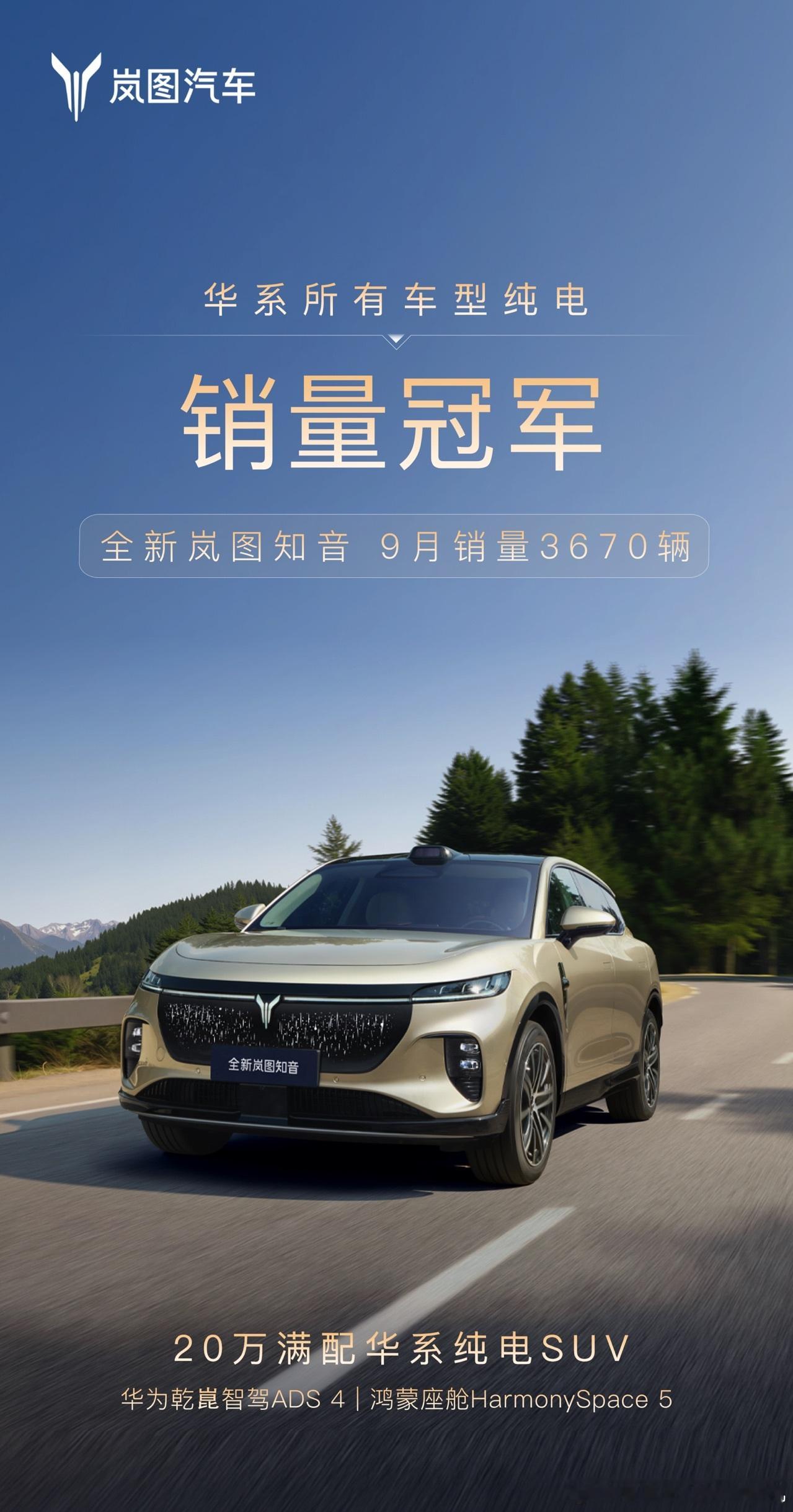 在众多华为合作的产品系类里,9月份岚图知音以3670台的月销量,成功超过各种“界”成为卖得最多的华系纯电车,有些人可能没有想到,但其实根本不意外。