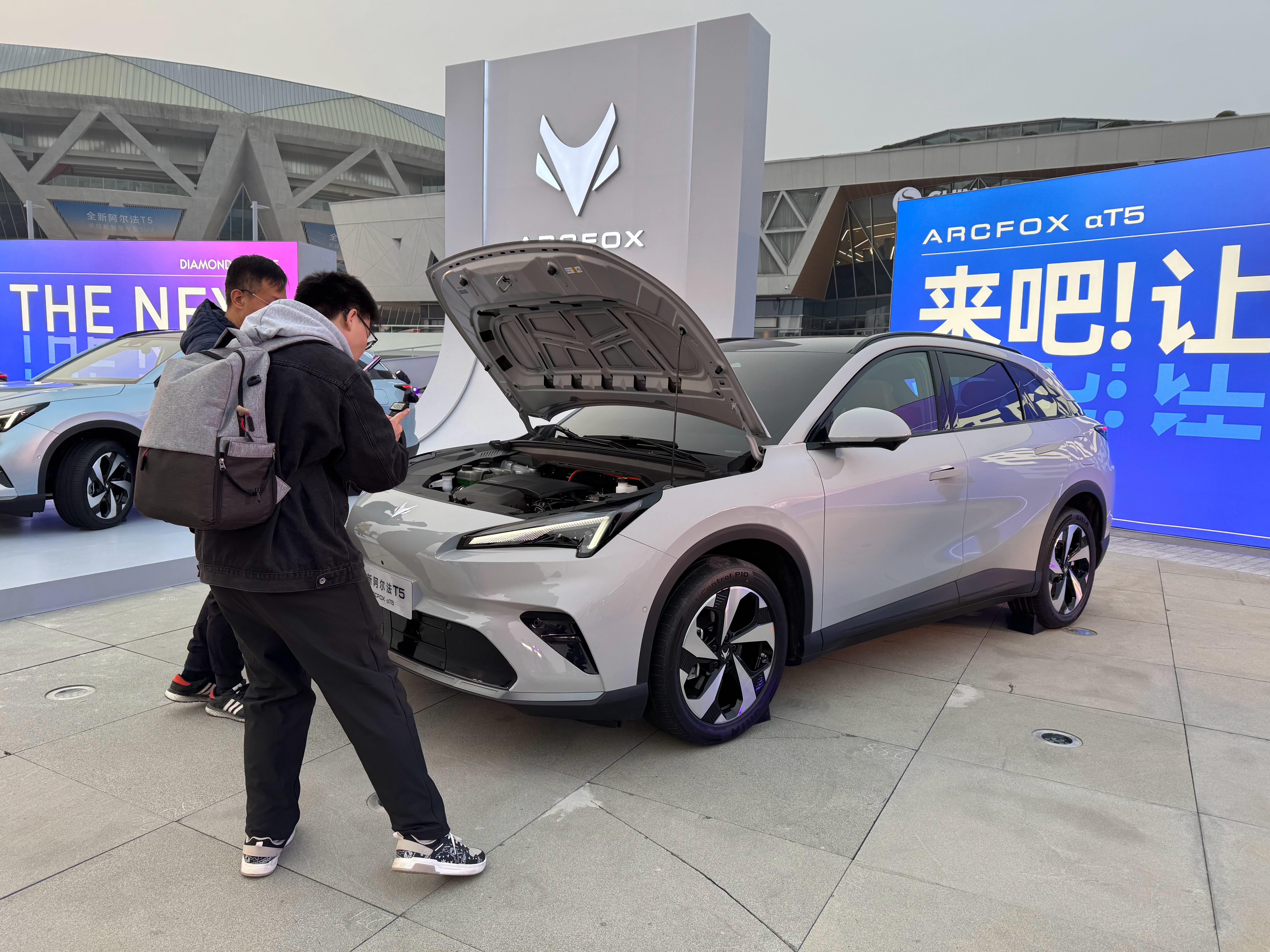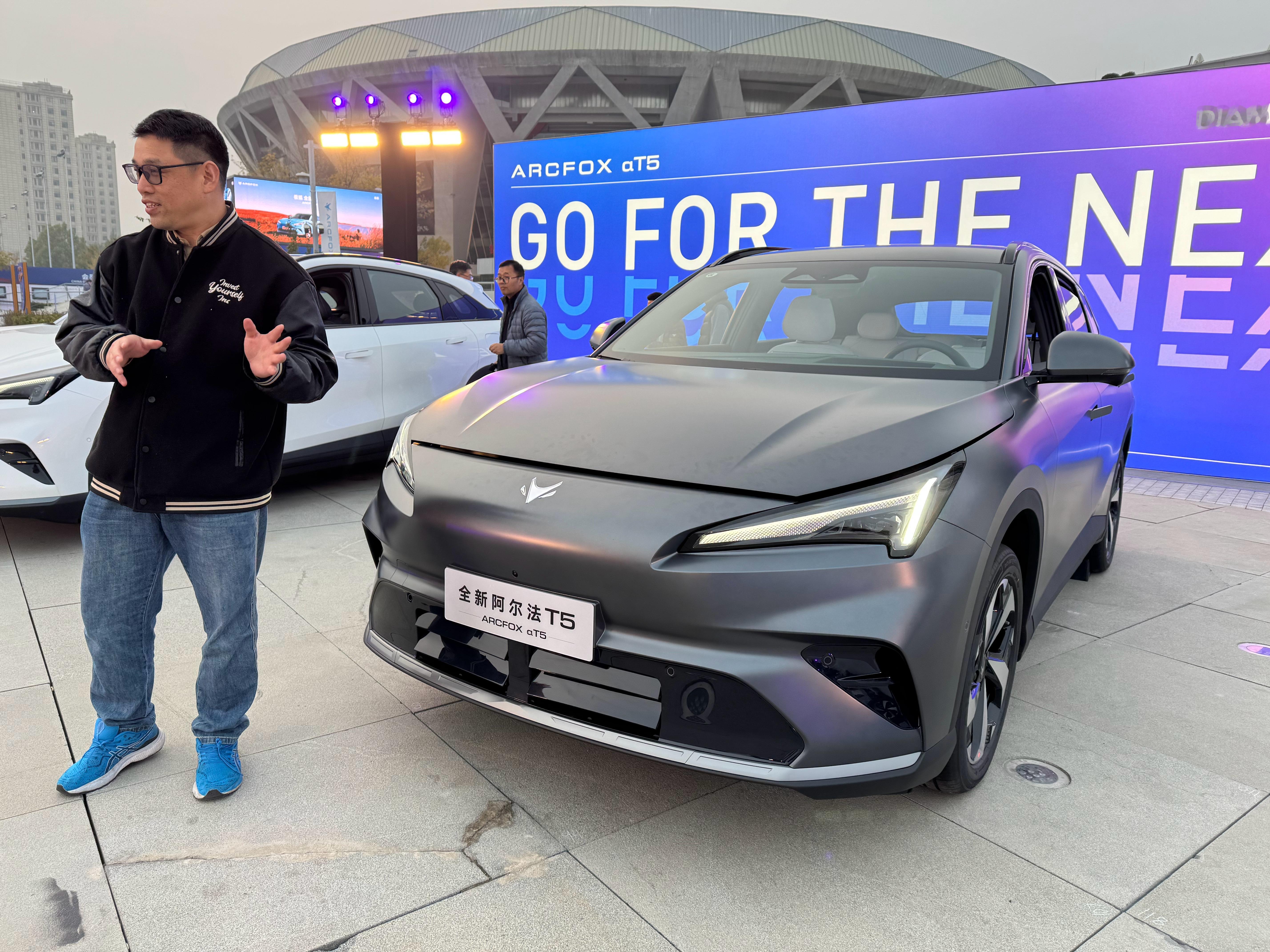 阿飞来参加极狐全新阿尔法T5上市了,现场有5台展车,颜色挺不错,特别是蓝色的,淡蓝[笑而不语]