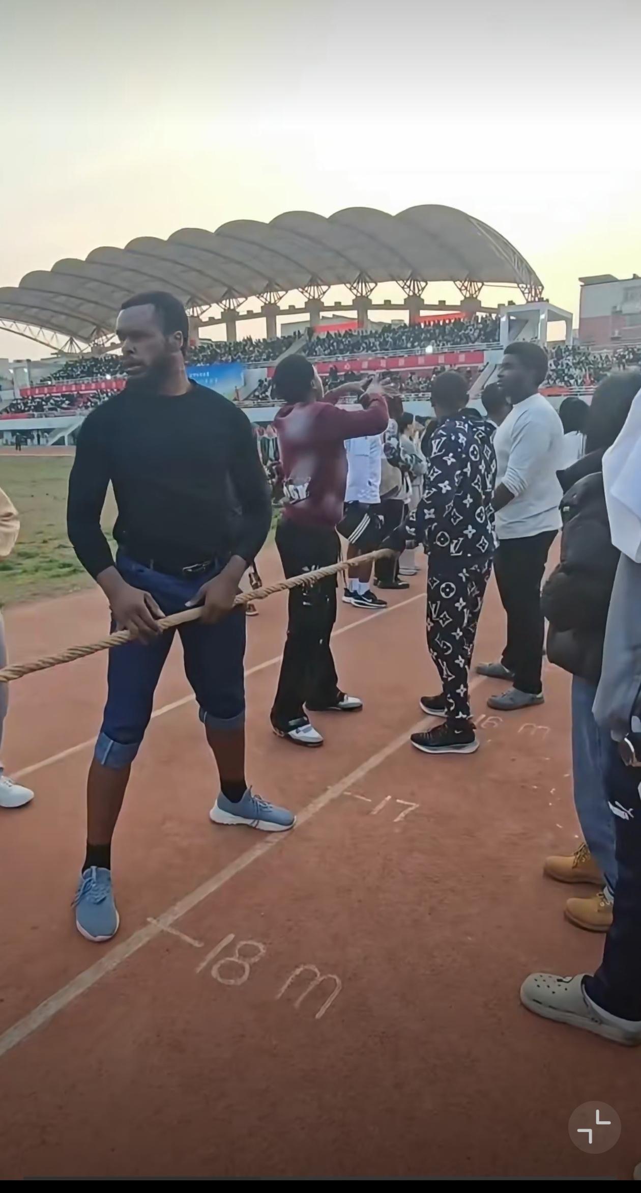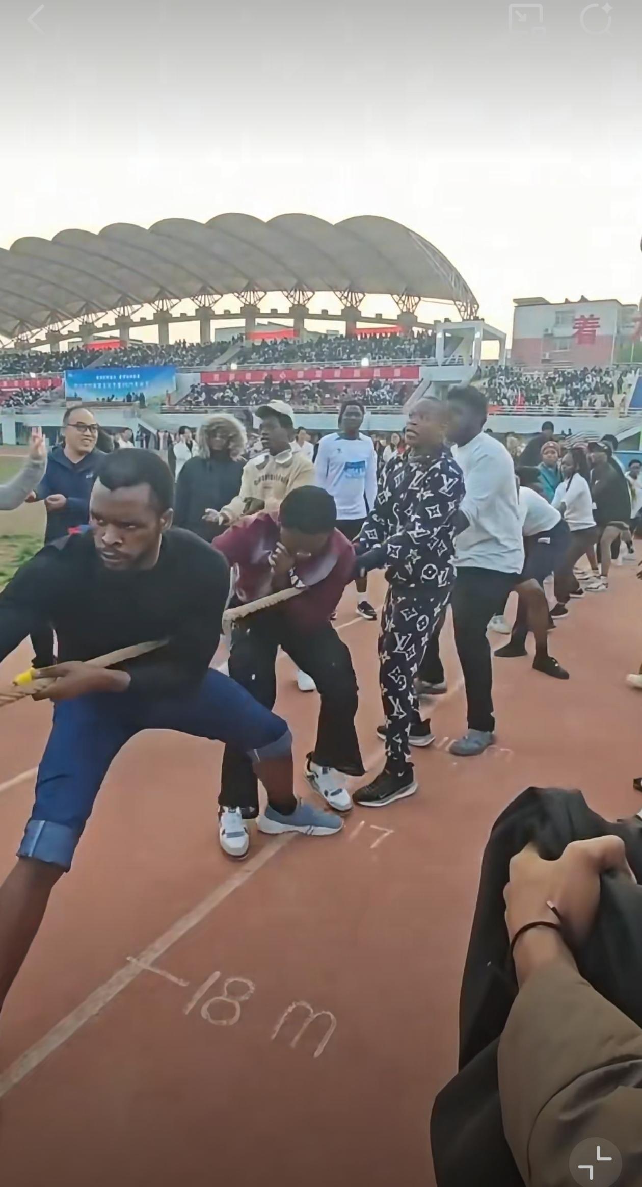 邢台学院黑人留学生参加拔河比赛,网友:他们是怎么找到这种小地方的 ?