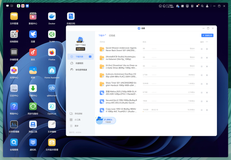 既然说到下载网盘,那么最常用的下载工具迅雷和qBittorrent必须支持,此外还有绿联自己的下载中心,也可以挂BT和种子,然后24小时挂着下载电影,手机端和电脑端都可以直接查看,方便。并且下载好的视频文件NAS的影视中心会自动联网匹配视频简介和封面、演员信息等等,安卓/苹果TV支持安装绿联云来直接观看NAS里的影片、还支持遥控搜索,支持挂载本地字幕和在线搜索字幕,体验拉满,手机端看视频也几乎和本地体验一样,快进不会出现延迟加载,这样一来可以彻底解放手机存储。