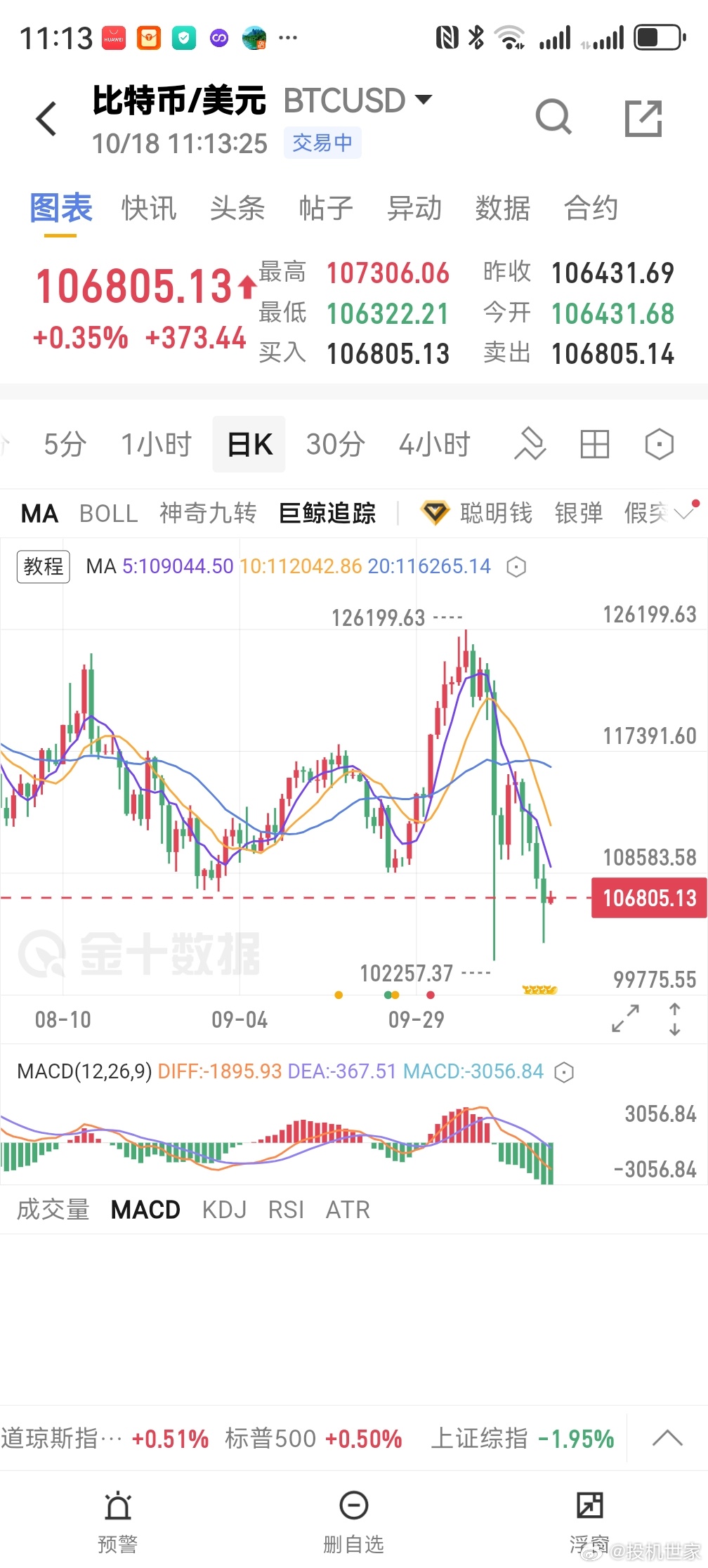 比特币早以太坊一步!日线级别仍是支撑周线级别仍是有调整出现。币圈
