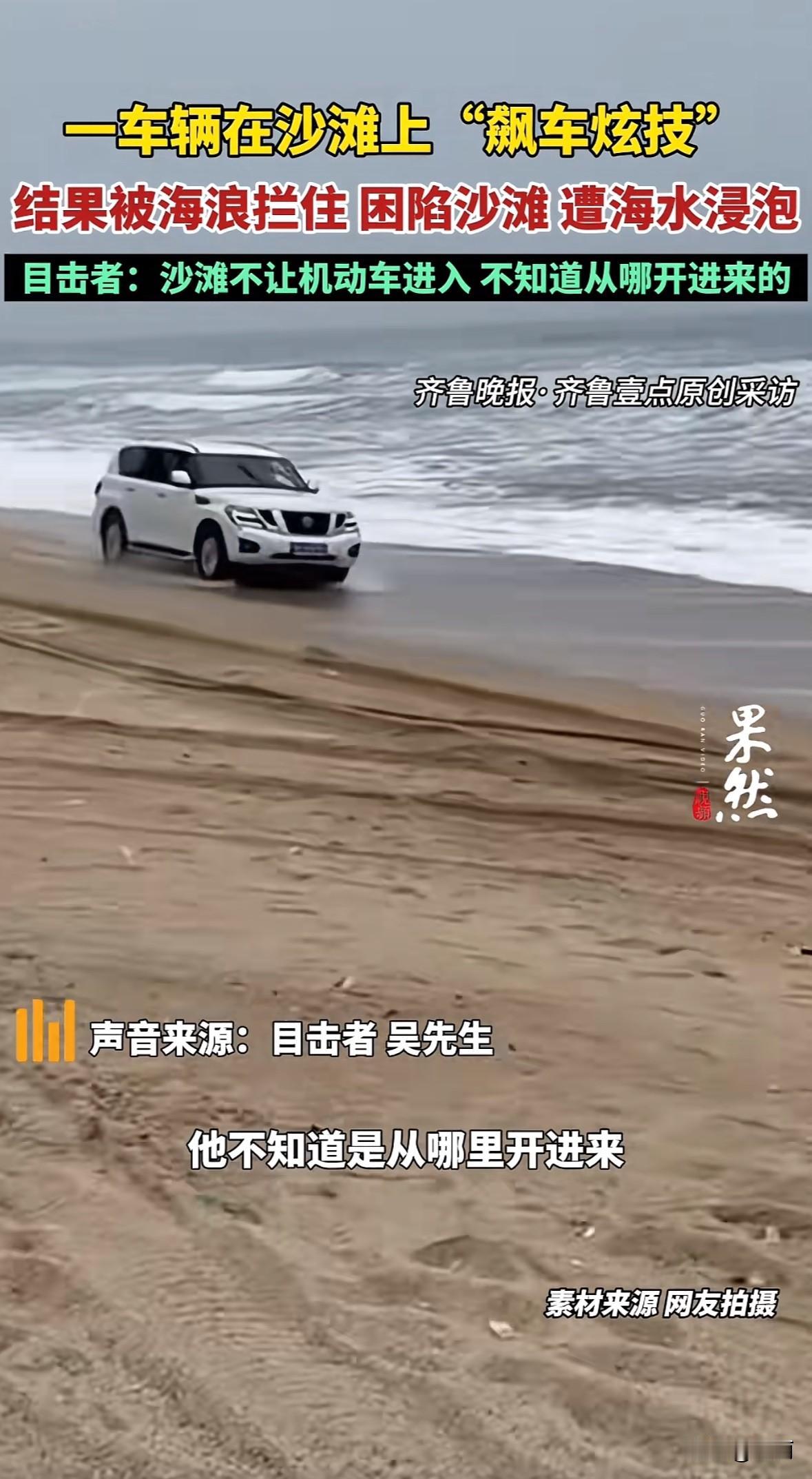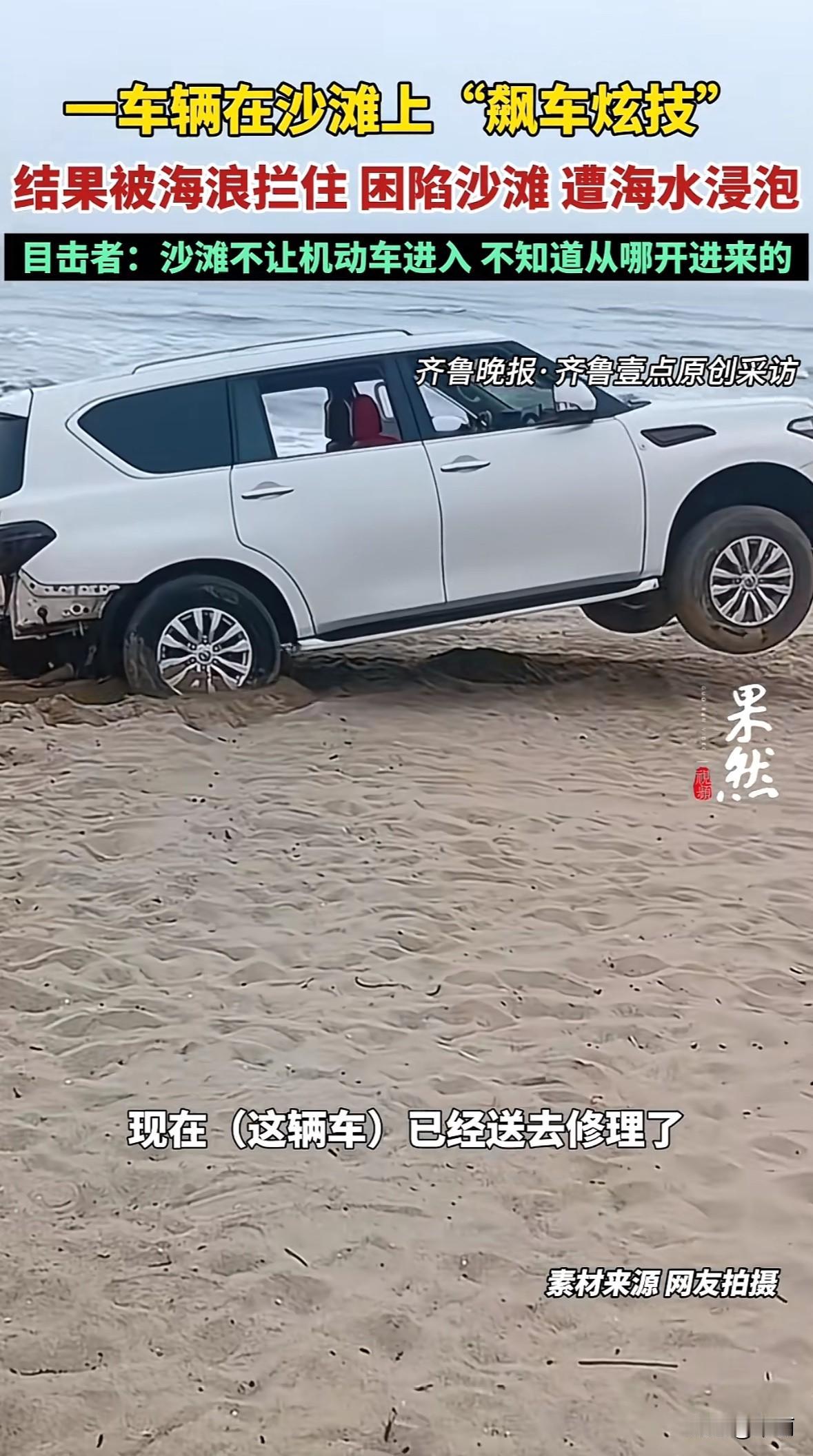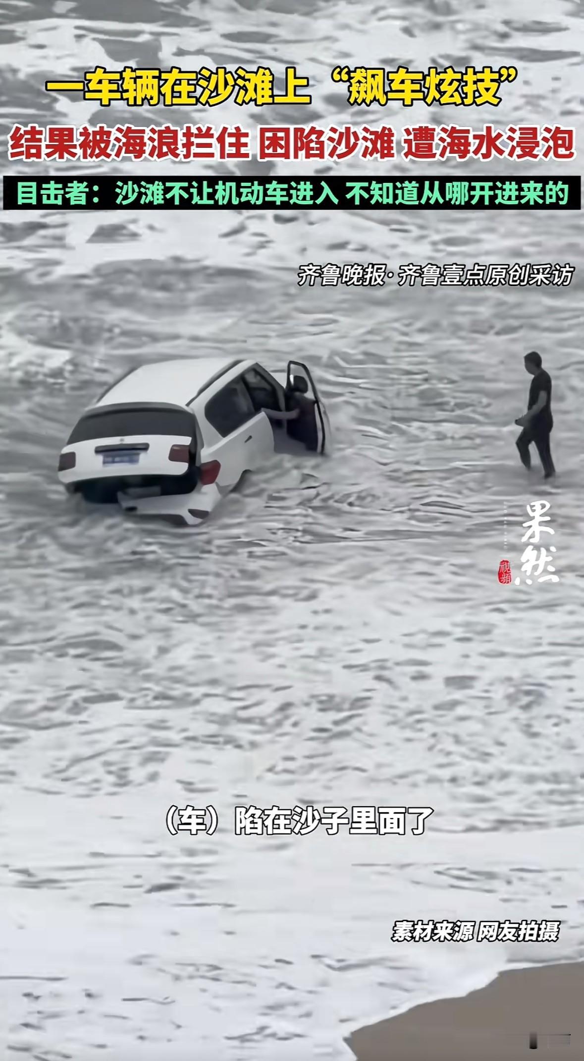 10月27日下午4点左右,广东惠州双月湾沙滩,一辆越野车违规闯入,在开阔处快速穿梭炫技,来回两圈后往临海区域开去。一个大浪拍打过来,车子瞬间陷进沙子里,海水很快漫过车轮,浸到车身下半部分。 推土机先去救援,因为陷沙深、沙滩软,没成功。后来调了挖土机,才把车拽上来。当晚车子送修,维修人员说在拆解检查,价格谈好的话要修十天半个月。 惠东县2019年就规定不让机动车进沙滩,怕油污污染环境、出安全问题。目击者也纳闷,平时都不让进,这次咋没拦住。 想耍帅结果爱车遭殃,还可能面临保险拒赔,毕竟是故意违规操作。破坏环境又给自己添麻烦,这“炫技”真不值当。规则摆那儿,就得好好遵守。