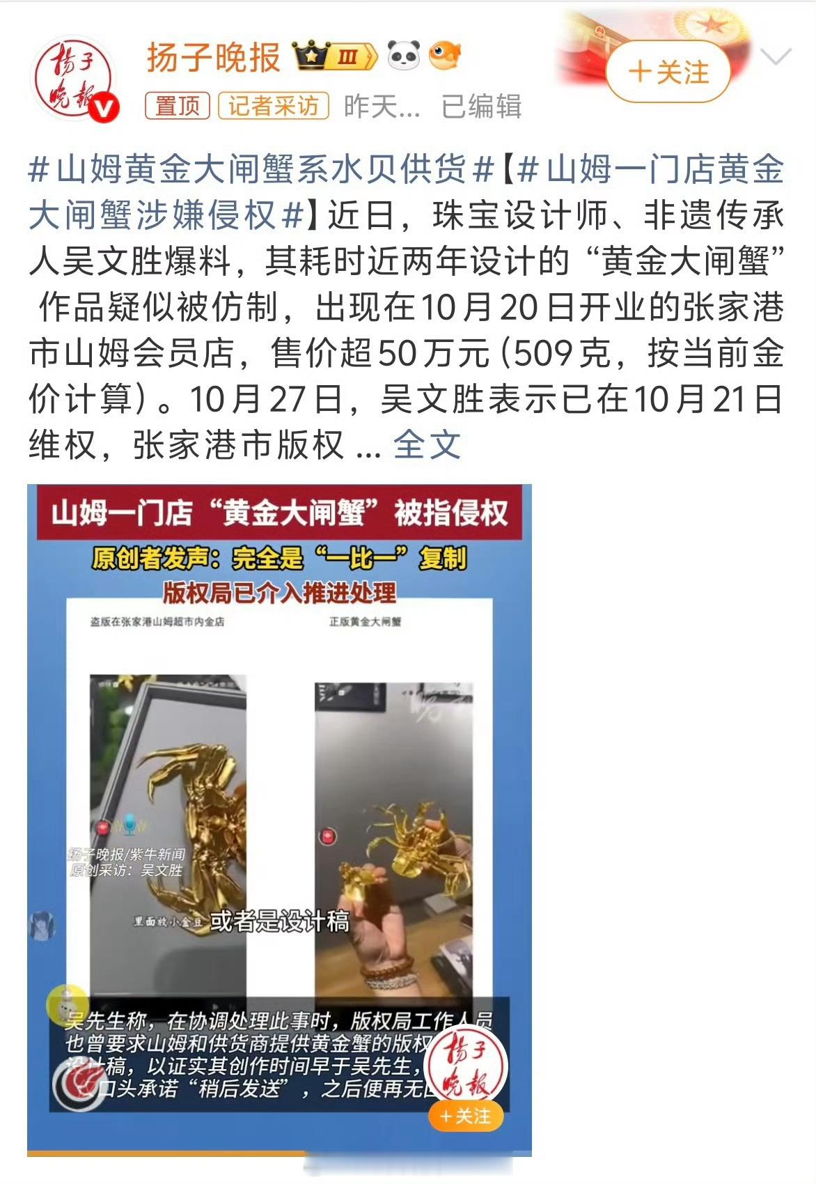 山姆黄金大闸蟹系水贝供货还以为是能吃的大闸蟹呢……不过黄金大闸蟹也可以换真的大闸蟹[阴险]