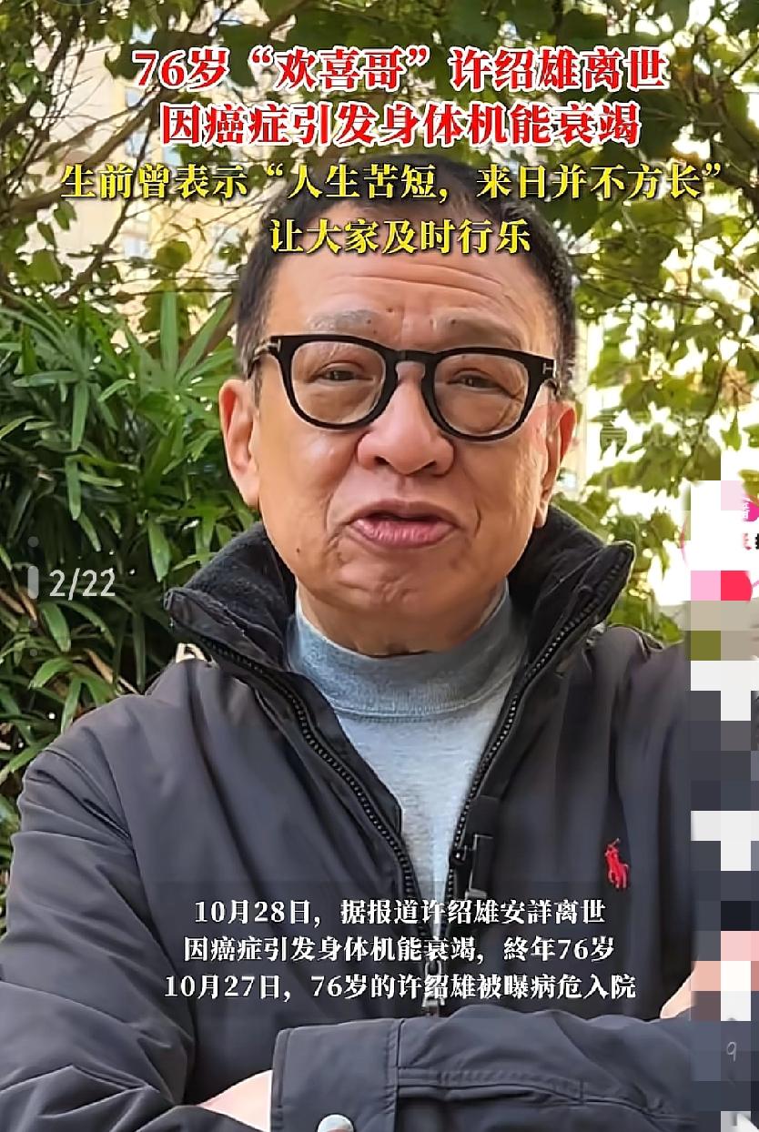 又一位老戏骨离世 我们的青春又少了份回忆 许绍雄,早把配角演成了观众的“精神熟人” 凌晨刷到许绍雄离世的消息,觉的好难受,从小看他的影片长大,虽是绿叶,但是入木三分的演技,早已深入人心。 他把每个小人物都演活成了我们身边的人——《使徒行者》里亦正亦邪的欢喜哥,《暗战》里靠谱又带点憨的黄警官,就连《My盛Lady》里的香善男,都像隔壁那个爱唠叨却真心疼你的长辈。 半世纪演艺路,他从不是“主角的背景板”,而是用每个角色在观众心里种下了记挂。 现在《绝命法官》还在热播,屏幕里他的笑容依旧鲜活,可屏幕外却再也等不到他的下一个角色了。这大概就是好演员的力量:角色会落幕,但那些留在光影里的温度,能暖好几代人。 你们记忆里最深的是他的哪个角色?是欢喜哥,还是某个让你笑着笑着就记住的小人物?许绍维