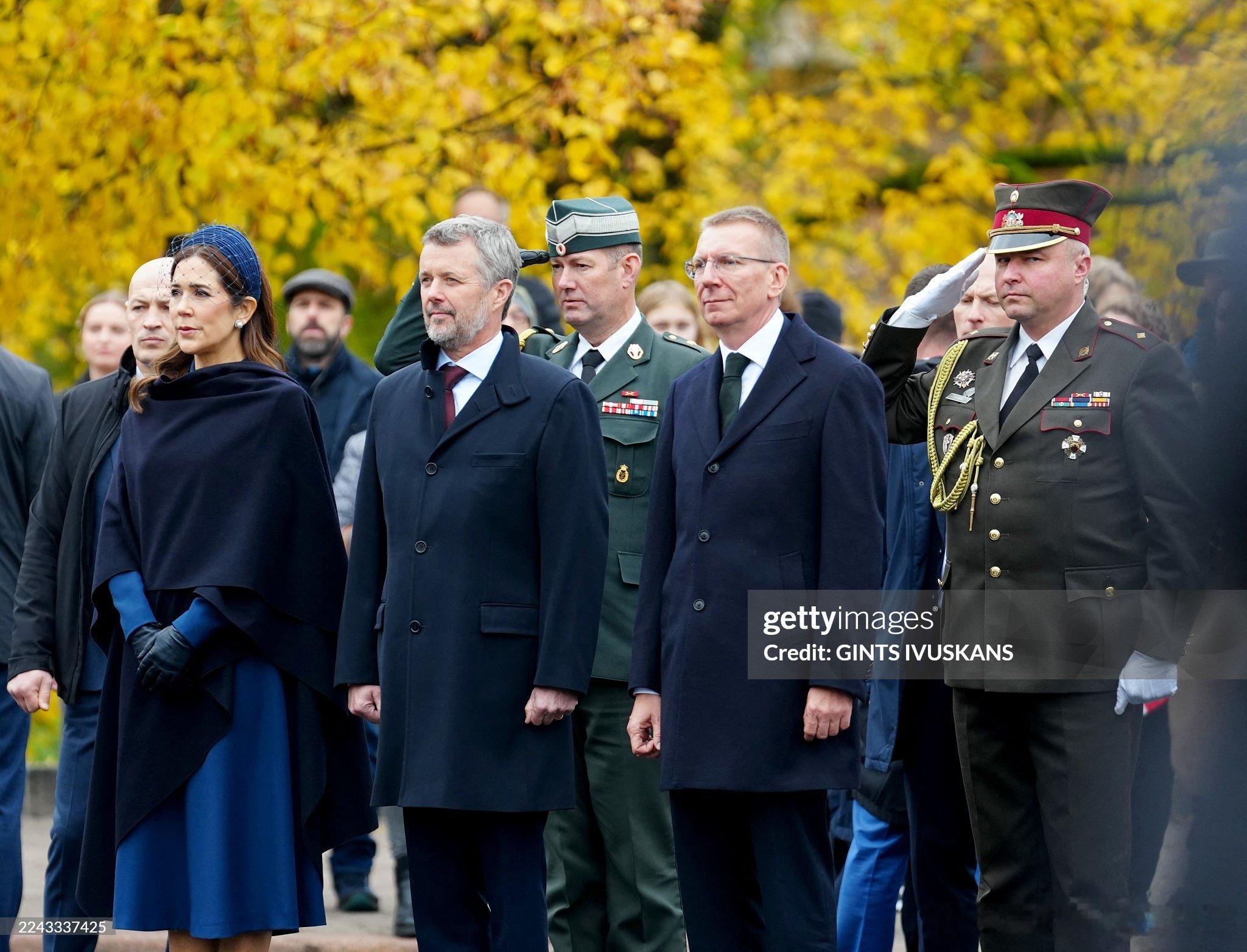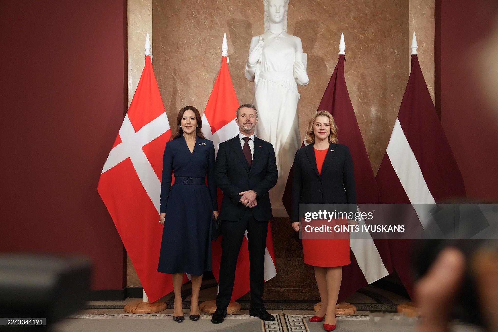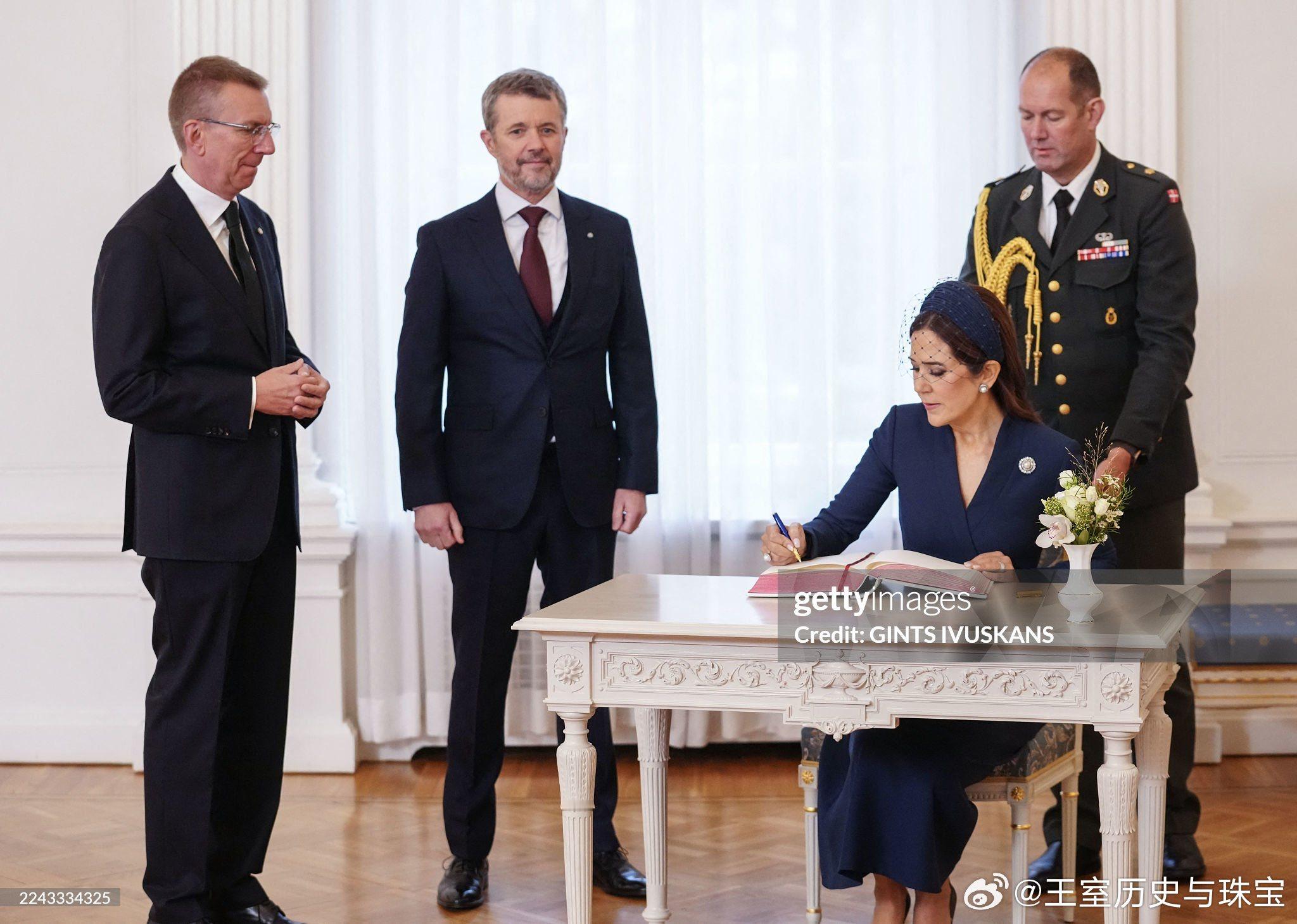 新闻 2025.10.28 丹麦国事访问拉脱维亚Day 2,一共是为期两天的国事访问,拉脱维亚总统埃德加斯·林克维奇斯(图1~图7)举行欢迎仪式,之后为拉脱维亚里自由纪念碑敬献花圈,会见拉脱维亚总理埃维卡·西里尼亚(图8)和访问拉脱维亚议会,大玛丽的旧套装来自Søren le Schmidt。 ​​​