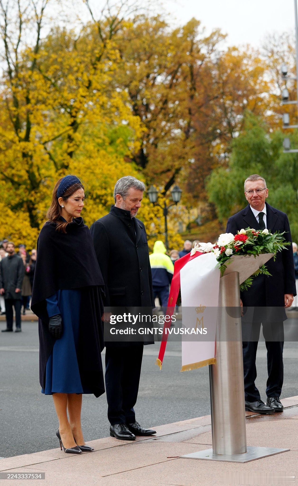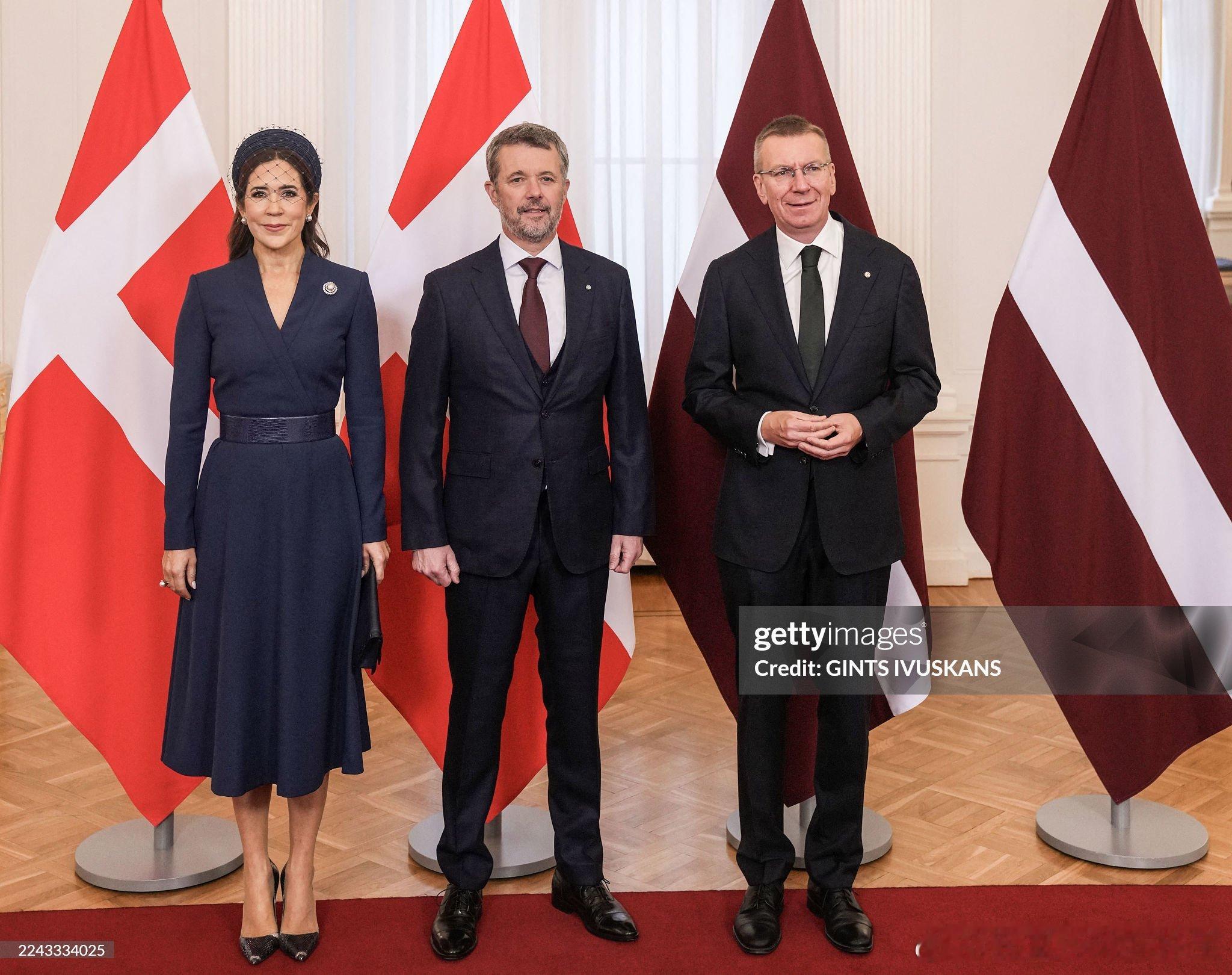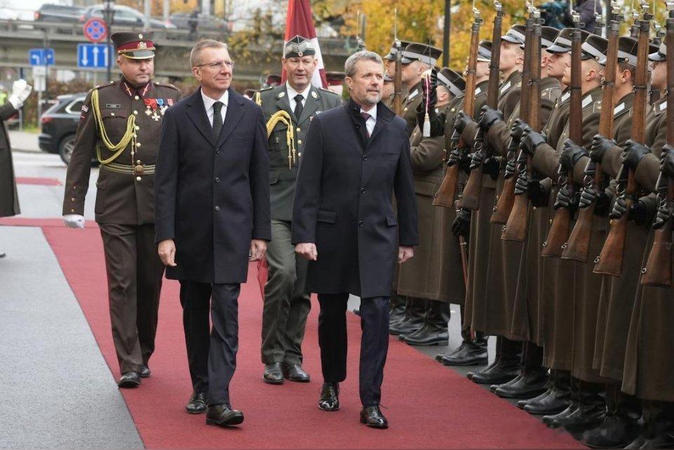 新闻 2025.10.28 丹麦国事访问拉脱维亚Day 2,一共是为期两天的国事访问,拉脱维亚总统埃德加斯·林克维奇斯(图1~图7)举行欢迎仪式,之后为拉脱维亚里自由纪念碑敬献花圈,会见拉脱维亚总理埃维卡·西里尼亚(图8)和访问拉脱维亚议会,大玛丽的旧套装来自Søren le Schmidt。 ​​​
