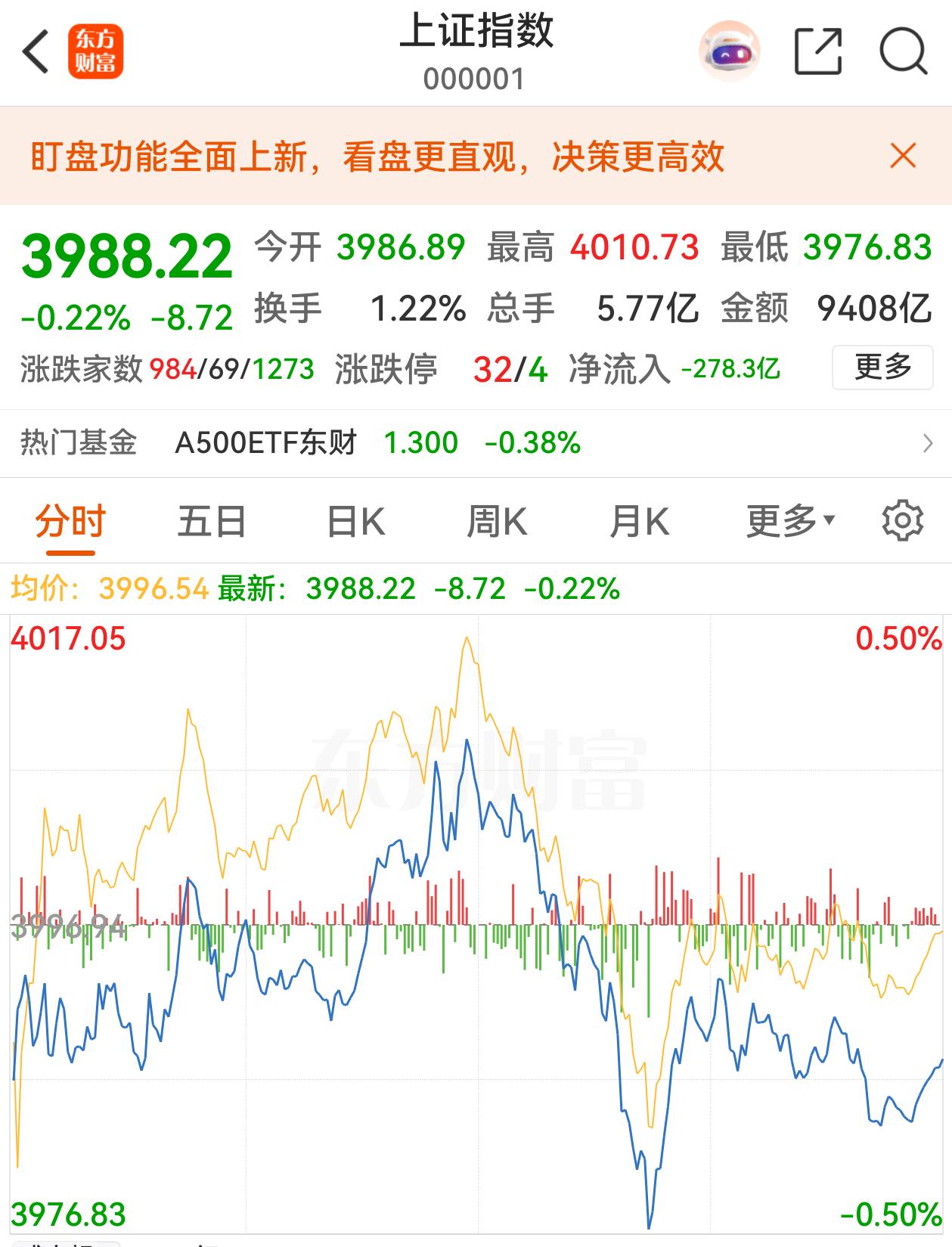 4000点得而复失,A股又一次重复昨天的故事。上证指数在上摸4100点之后,还是