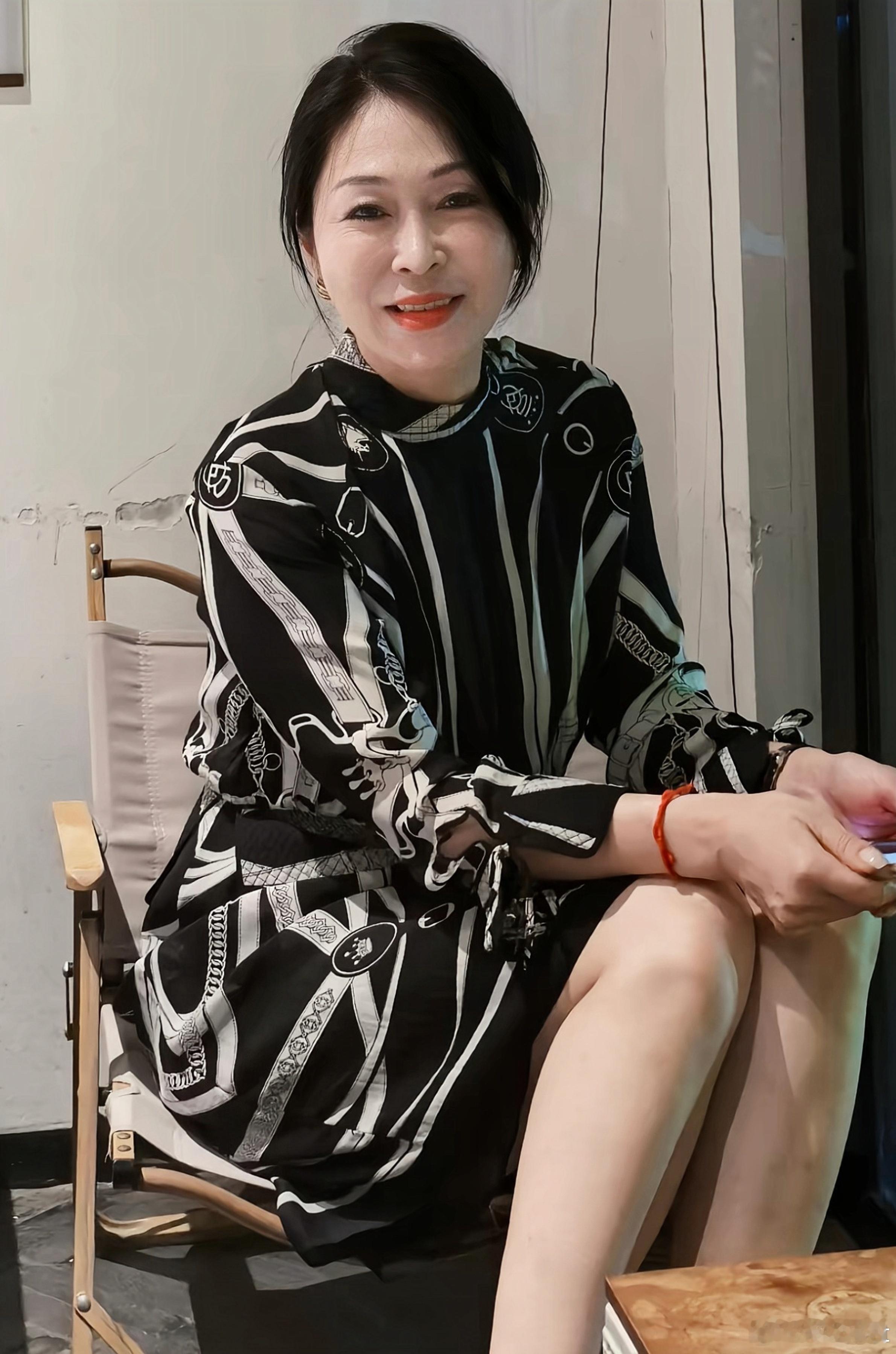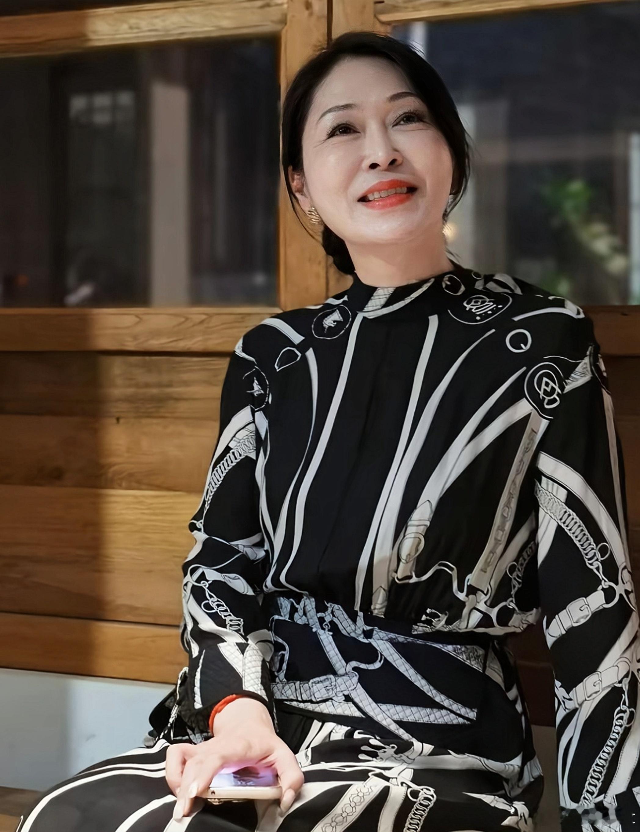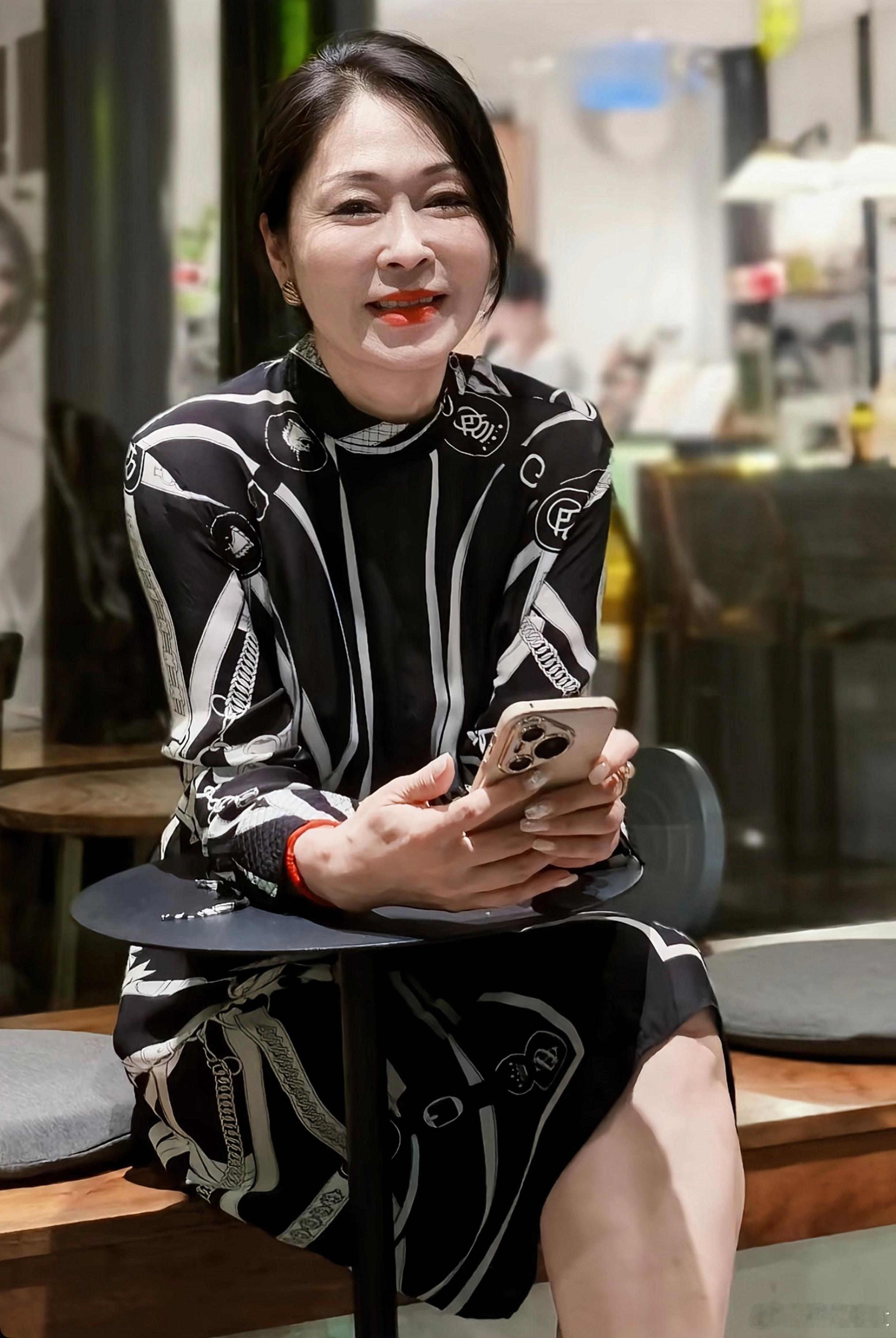 蔡文静,黑长直搭配一袭銮金长裙,好生迷人
