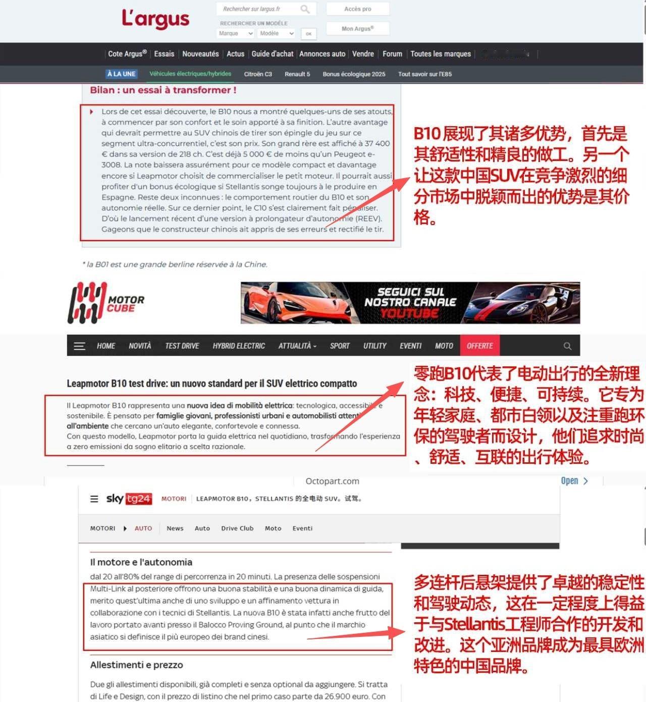 最近有个绝佳的例子。中国车企零跑,没有选择单打独斗,而是选择和欧洲汽车巨头Stellantis合作。这一步棋非常高明。一方面有巨头背书,渠道和信任问题瞬间解决大半,所以在德国市场能迅速铺开,销量领先;另一方面,零跑顺势将全球战略车型B10推向欧洲,不仅完善了海外产品矩阵,更把全世界最懂车的一批媒体请到法国的蔚蓝海岸来试驾“检阅”,好评一旦形成,就是全球性的口碑效应。