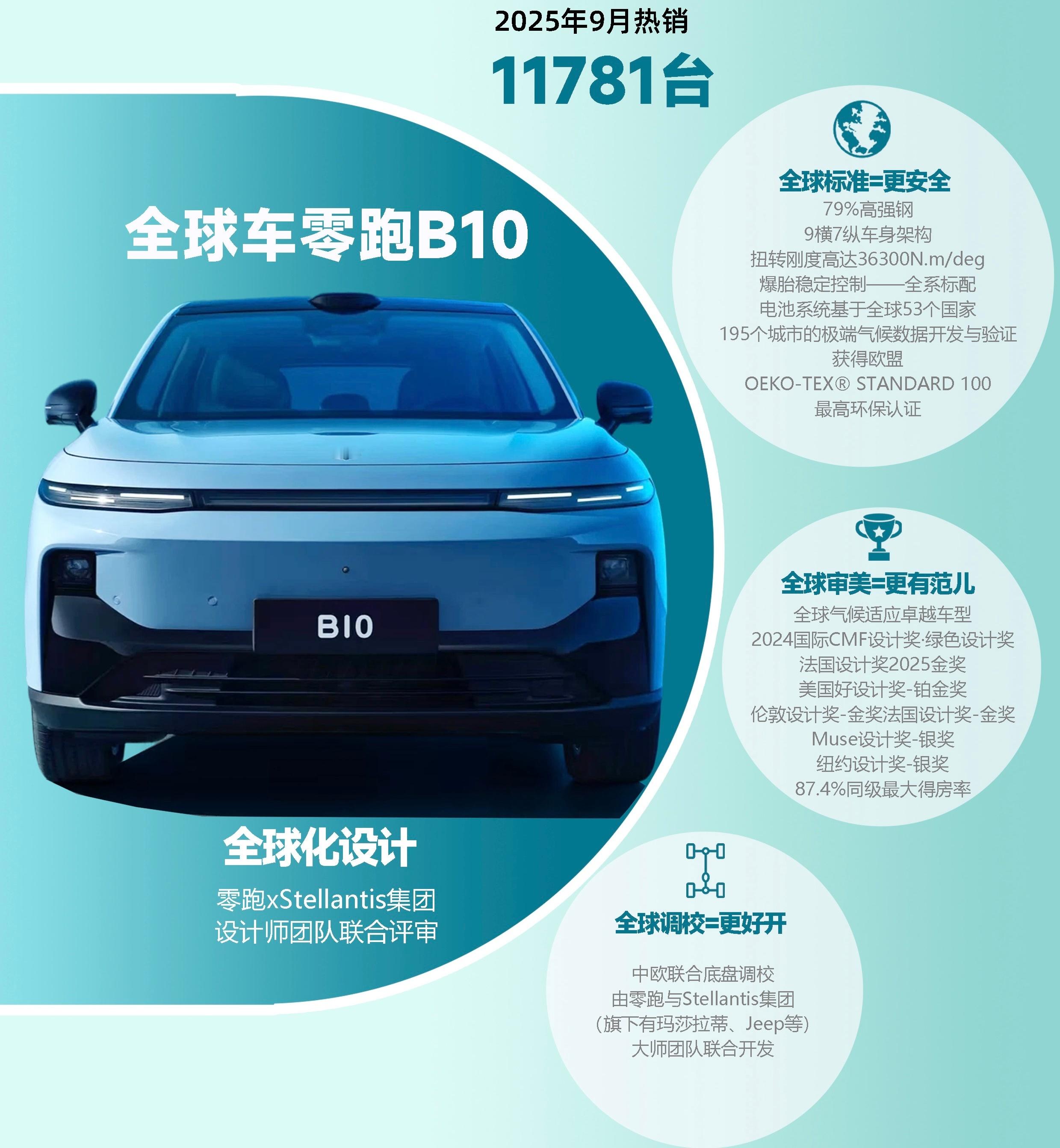这背后,是零跑在产品开发阶段就植入的全球化基因:不仅完成了横跨欧洲、南美、非洲、亚洲等18国200城的百万公里严苛测试,整车满足53个国家及地区的法规要求,更针对不同市场需求实现精准适配。零跑B10从诞生起,就不是一个“地方选手”,而是面向全球用户的诚意之作。