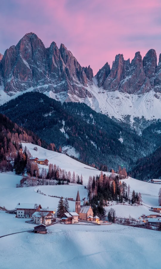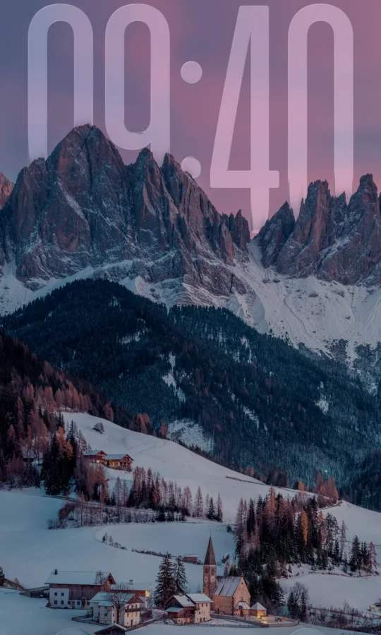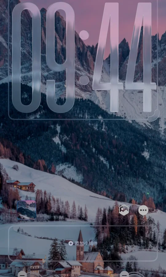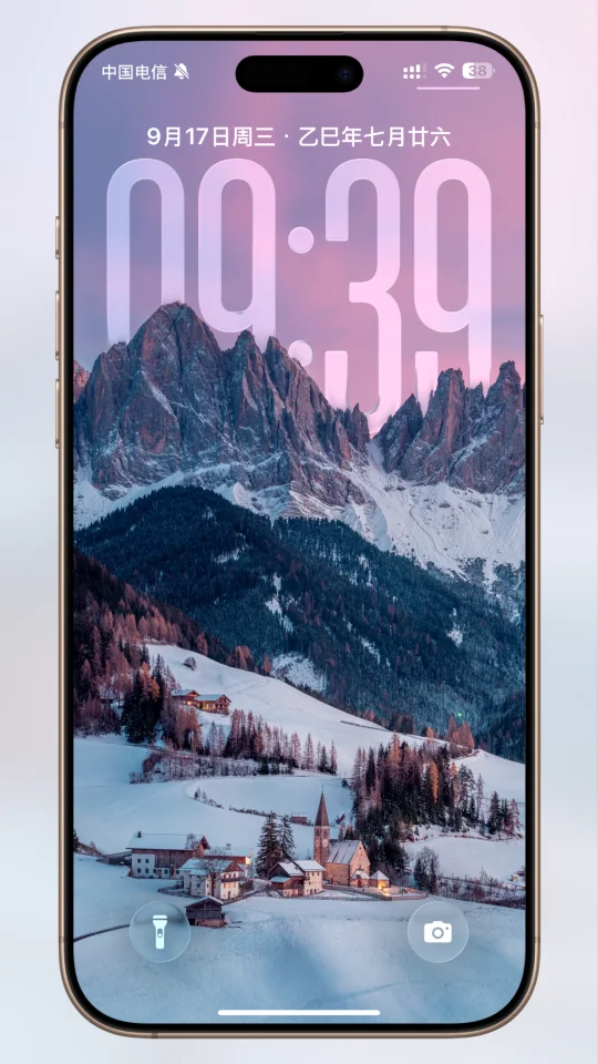 简直像是从电影中走出来的治愈画面 粉红色的晚霞缓缓浸染天际 与地面上洁白的雪无声交融 仿佛天地都被温柔包裹 远处绵延的雪山在暮色中勾勒出静谧而磅礴的轮廓 与山脚下点缀的欧式建筑相映成趣 小木屋、木制窗台、昏黄的灯光隐约闪烁 像是安徒生笔下的童话悄然落进了现实 这一切宁静而纯粹 仿佛能听见雪落的声音 能触摸到时光柔软的痕迹 简直就像《海蒂和爷爷》中那一幕幕治愈心灵的场景 每一次解锁都是对眼睛的洗礼 结合iPhone最新系统的3D空间效果 仿佛有一种身临其境的美妙