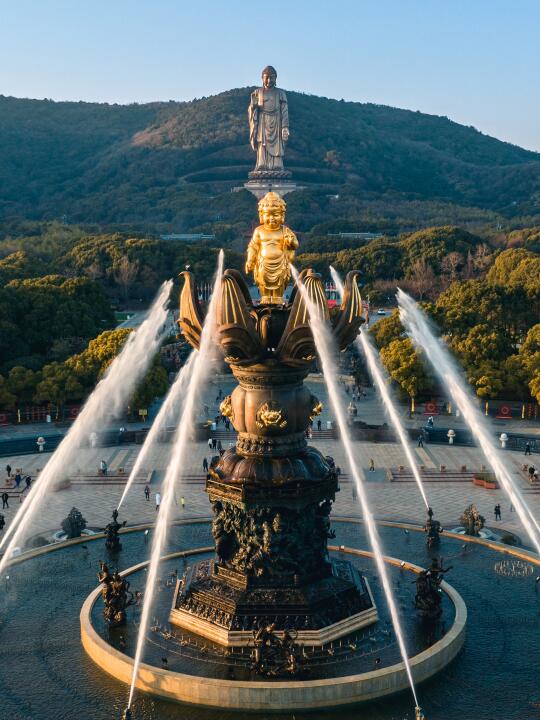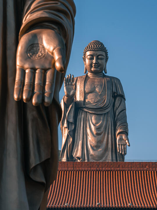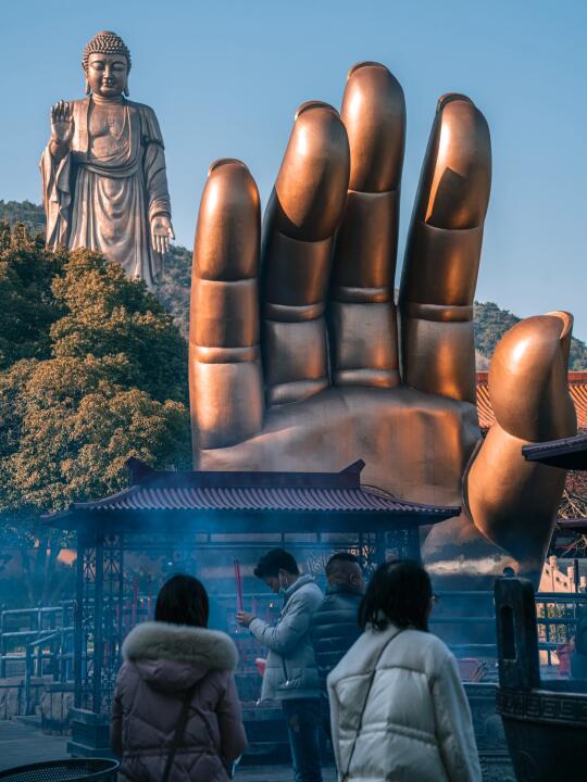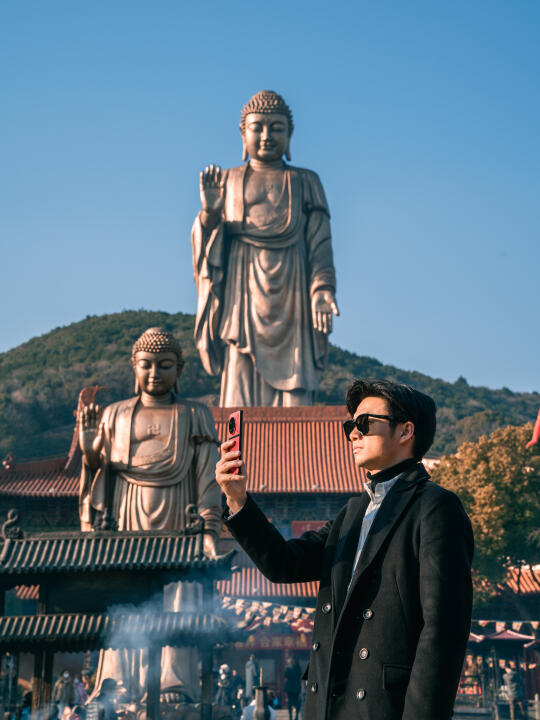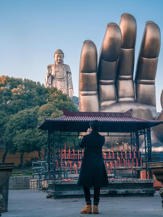 这是身高30米的灵山大佛的手,1:1矗立在眼前,无比震撼。错位拍摄,可以把手和大佛一起拍