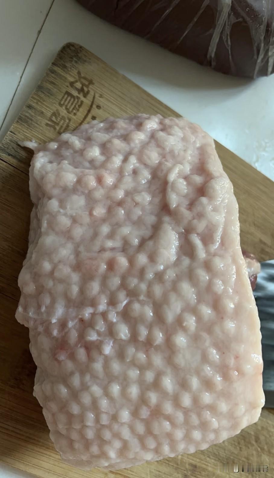 妈呀,昨天买了一块五花肉,削完皮竟然变成这个样子,真是吓死个人了!有人懂这是怎么回事儿吗,这肉还能吃吗?不会有什么要命的病毒吧?