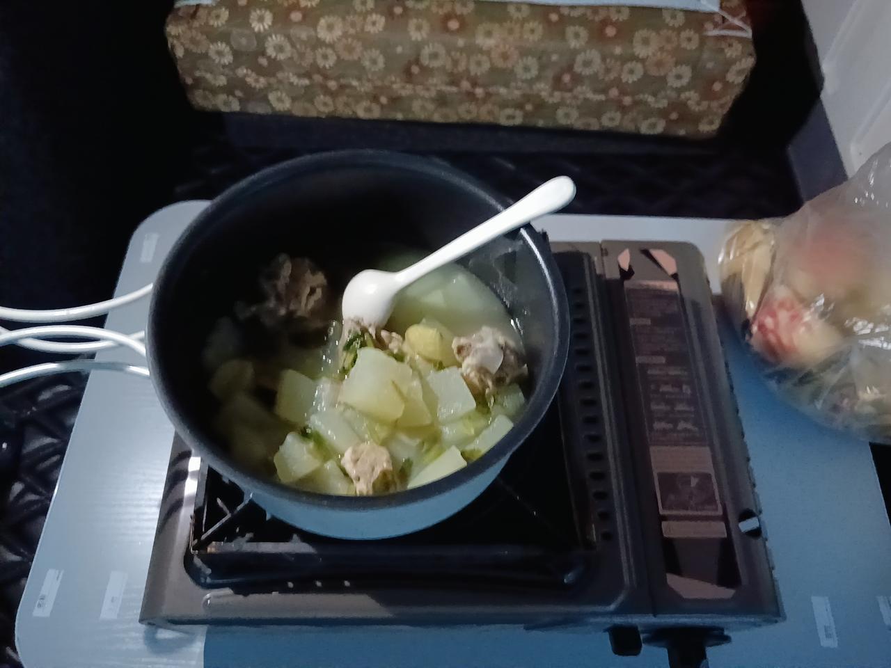 早上不到七点从燕郊出发,一路高速往南。到河北邢台的时候开始下雨,时停时下,时大时小。进入邯郸时,油箱就剩5个格了。河北是乙醇汽油,不耐烧还不便宜,之前错过了几个加油站,结果后边的好几个服务区都加不了油。幸好快出河北时,一个服务区有简易加油站,果断加了100块钱的,够开200多公里。 不到五点进入山西,雨一直下个不停,路上没有太合适的驻车地,就这么一路开一路找,一直开到潞城服务区,正好这有遮阳棚,躲雨刚好。热了热早上做的冬瓜排骨汤,吃了半个菜团子,洗漱完毕都快七点了。 上车也没闲着,先把当天的视频编辑出来、回复评论、写个小作文。这一天过得真是太充实了。