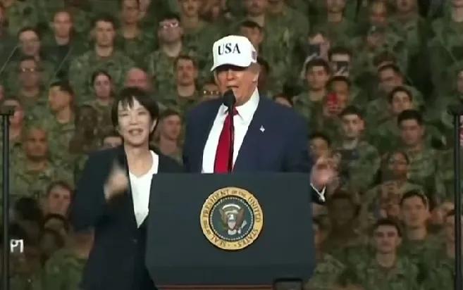 高市早苗太疯狂,和特朗普搂搂抱抱,连日本右翼都看不下去了,大骂高市早苗是叛徒! 近日,特朗普访日,在驻军基地为高市早苗举办“庆功会”,高市早苗单刀赴会,进了狼窝。 台上,特朗普一把将高妹搂入怀中,面对老特的出格举动,高妹并不抗拒,像一个娇滴滴的小女人,依偎在老特旁边,赤裸裸地诠释了妩媚的美日同盟关系! 高市早苗的疯狂举动,彻底激怒了自己的“娘家人”日本右翼团体,怒骂高妹身为一国之首,竟然没有“男女授受不亲”之羞耻,日本的颜面被她丢尽了,和叛国者无异!!!