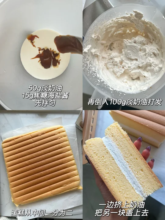 奶油部分150g淡奶油+20g焦糖海盐酱