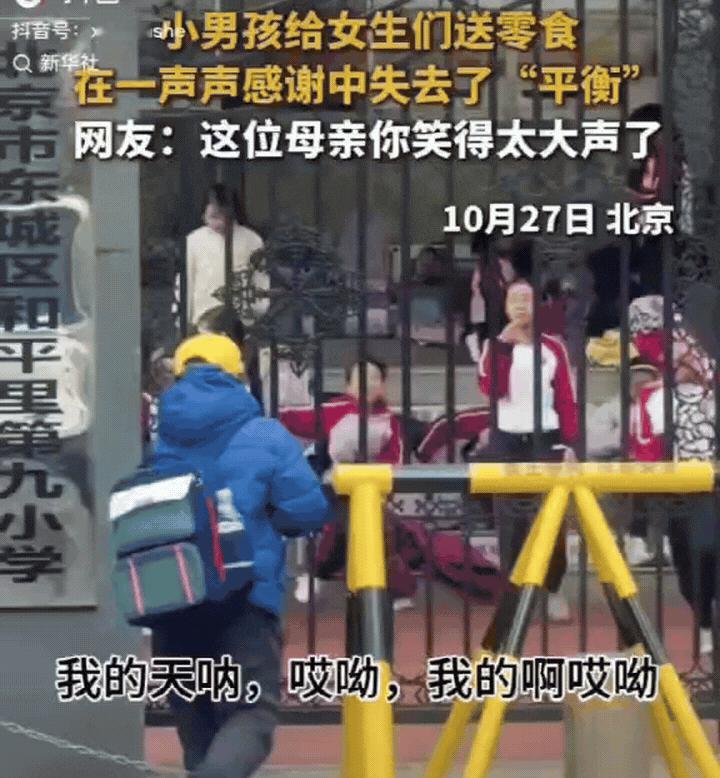 上新华社了!北京,小男生给女生们送零食,在一声声的感谢中,迷失了自我,失去了“平衡” 摔了个大跟头,老母亲的笑声都传到新华社了。网友:你看这几个姑娘,哪个最不顺眼,估计以后就是你儿媳妇。 有网友说:这个我比较熟,以前喜欢厂里的一个男生,就请了流水线上所有人吃饭。 视频中,只见男孩怀里抱着一堆零食,大步流星的向着校门口的女生走去,女生们看见男生来了以后,一个个飞快的跑到门口接过男生手中的零食,嘴里还在不停的说着谢谢。 母亲看到这个场景,在身后说:哎呦,我的天呐,哎呦,我的儿子啊,哎呦…! 这位母亲难道是在担心养了几年的好大儿,被其他女生“抢走”吗,这醋吃的全网都听见了。 男生送完手中的零食,嘴角的笑意都快翘到耳根了,还特意冲老妈挑了挑眉,那小表情仿佛在说“看你儿子厉害不”。接着男生潇洒转身,冲女生们挥了挥手,正要像偶像剧男主那样潇洒的离开,脚下突然被铁链一绊,摔了个马大哈,来了个“五体投地”的标准姿势。看到儿子摔了个马大哈,母亲的笑声都掩盖不住了。 视频上传到网络时候,评论区彻底炸开锅了。网友说:这是为了一个女孩,给所有的女孩都买了零食啊。 有网友调侃:这男生懂事,投喂完女生,转身就给妈磕一个,必须得感谢资方。 有网友说:我有过类似经历,我是迅速的爬起来装作没事,继续走,走到没人的地方再看手都破了。 老话说“少年心事最动人”,这一摔摔得憨态可掬,这位母亲的笑声更是暖到心坎里,原来成长里的小糗事,才是最珍贵的烟火气。 不得不说,小男孩子前一秒像我是王子,后一秒,我是谁?我在哪?做着温暖的事,出着最大的糗。
