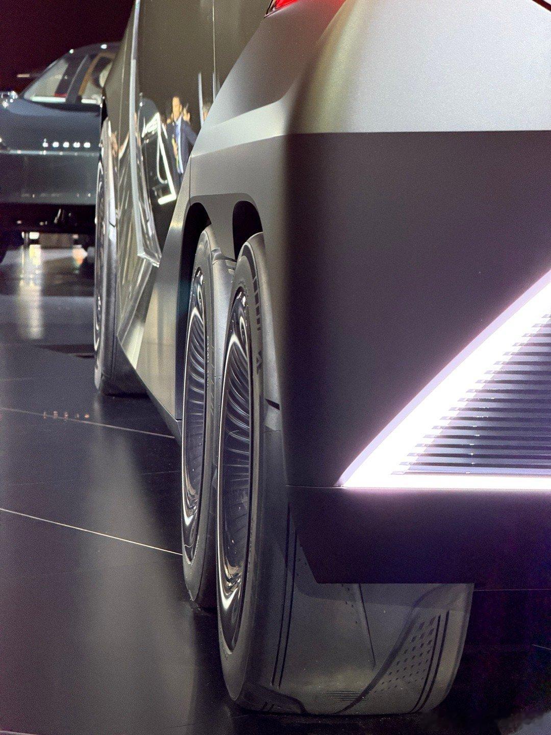 现场实拍,这不是雷尔法哦,是未来的雷克萨斯LS,后轴的两个小轮子可以把后排的车内鼓包做的尽量小。
