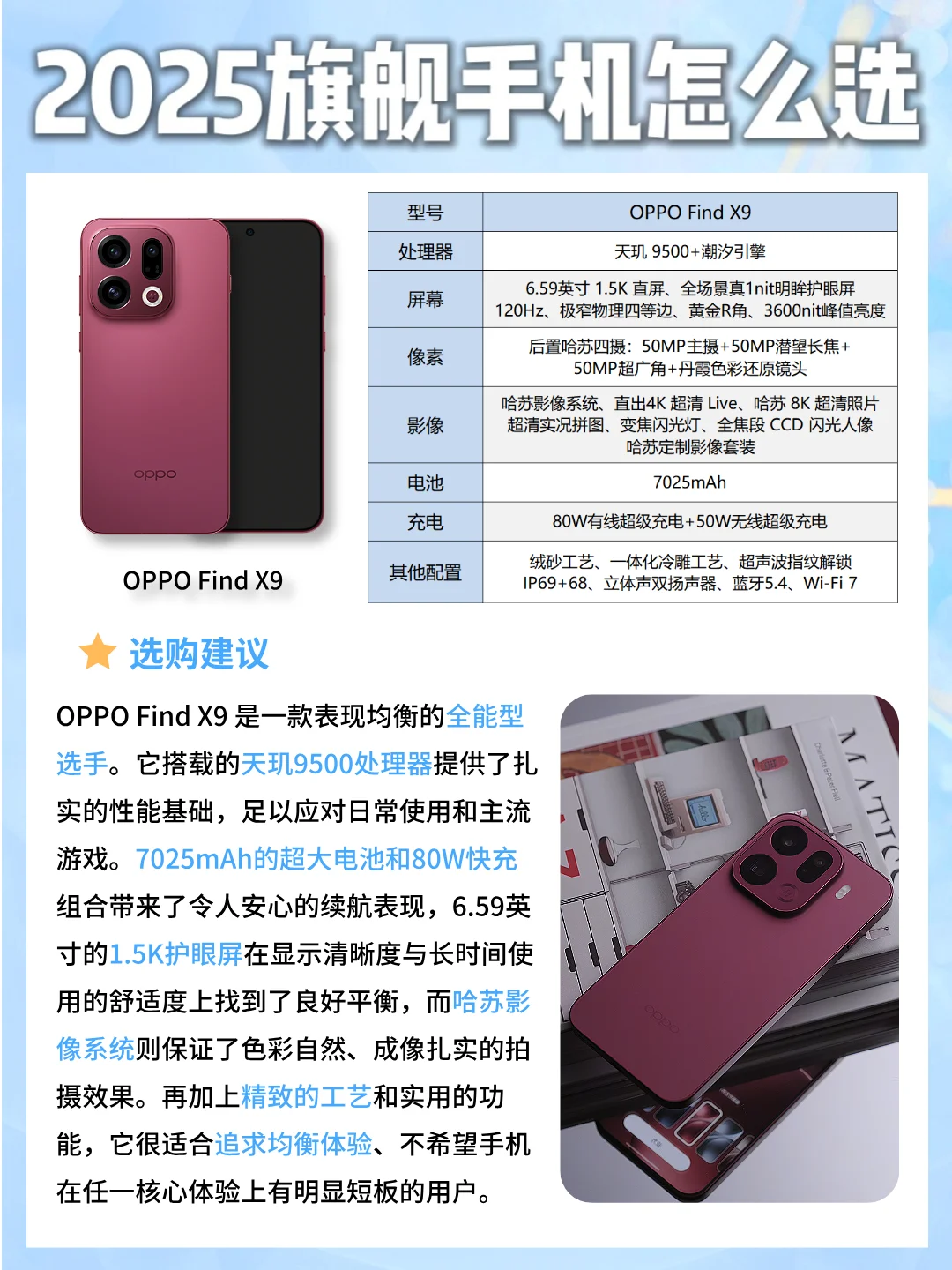 [赞R]下半年这波标准版旗舰手机可以说各有优势。[萌萌哒R]但如果你追求全面均衡,希望屏幕护眼、系统流畅、拍照出色、续航还顶——那 OPPO Find X9 可能是今年综合实力最稳的“标准版旗舰”,各方面都是越级配置,X9标准版给到了Pro级配置,[赞R]尤其在ColorOS 16加持下,日常使用真的舒服,像是一位不偏科的优等生。🎯