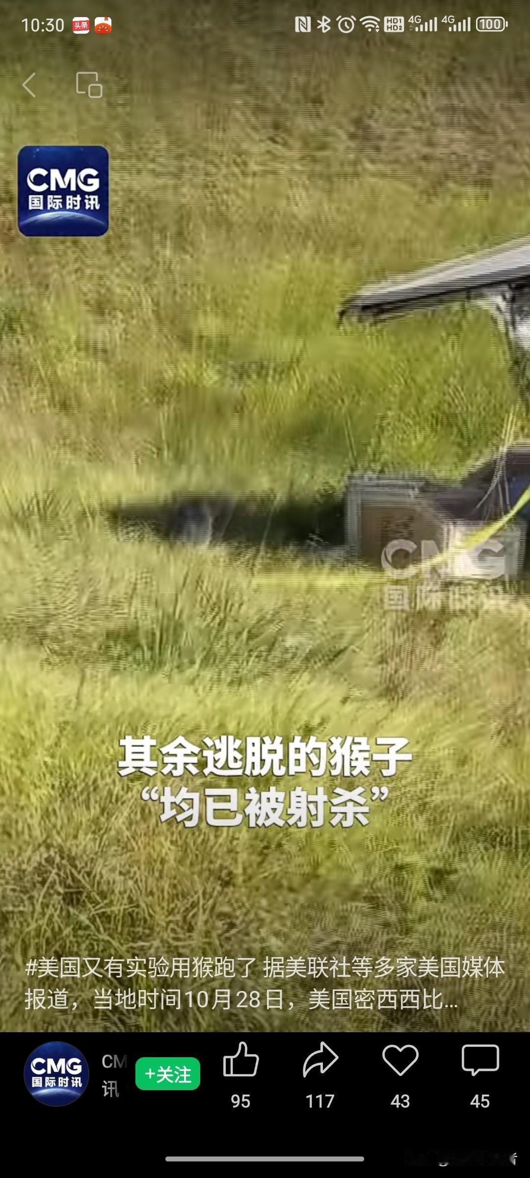 【惊天丑闻!美国实验猴再逃窜,警方疯狂射杀!官方警告:携带新冠、疱疹多种病毒,大学急否认!】 🚨突发!美国又双叒叕“翻车”了! 10月28日,美国密西西比州一条公路上,一辆运送实验猴的卡车突然侧翻,大批恒河猴集体“越狱”!警方如临大敌,直接开枪射杀,仅留一只活口!现场画面堪比灾难片,民众被警告:“猴子带毒,远离!” 🔥细节毛骨悚然:带毒猴子横穿公路! 这些猴子可不是普通“泼猴”!警方紧急声明:它们携带疱疹、丙肝、新冠等多种病毒,极具攻击性!而涉事的杜兰大学却轻描淡写称“无传染性”,一边甩锅一边与警方“合作”。网友炸锅:“病毒是假的,那你们慌什么?直接开枪灭口?” 💀背后疑云重重:实验猴为何总逃窜? 这已是美国近年第二起“实验猴大逃亡”!上次43只全数捉回,这次却直接血洗公路!卡车来源、猴子去向、运输目的全成谜!有人质问:“是管理疏忽,还是另有隐情?这些猴子究竟做了什么实验?” 👊网友怒嘲:熟悉的套路,熟悉的谎言! “一边警告病毒致命,一边否认传染,美国剧本能不能换换?”“如果真没风险,何必当场射杀?难道怕猴子开口说真相?”更有犀利评论:“新冠溯源还没说清,实验室动物倒先跑出来了!” 科学研究的底线在哪?民众安全谁保障?当“实验猴”成了公路上的牺牲品,我们该追问的不仅是管理漏洞,更是背后那些见不得光的生物实验! 你怎么看? 热点