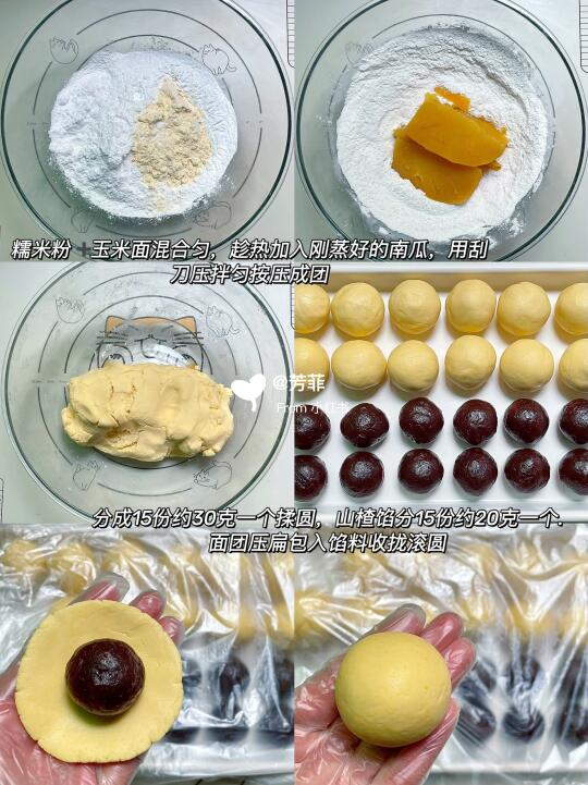 糯米粉180g | 玉米面30g | 熟南瓜约230~240g | 山楂馅300g