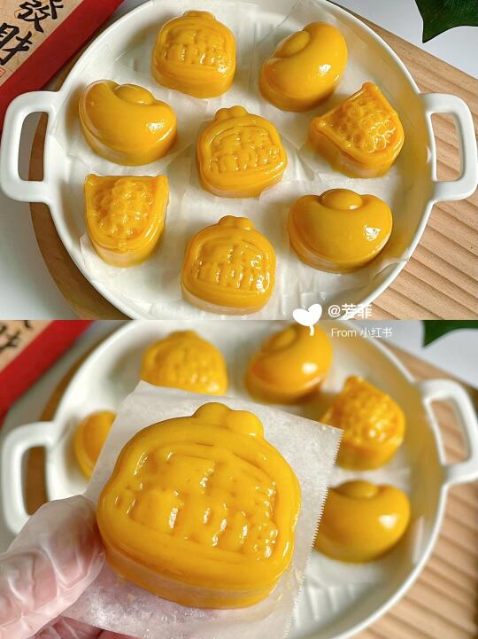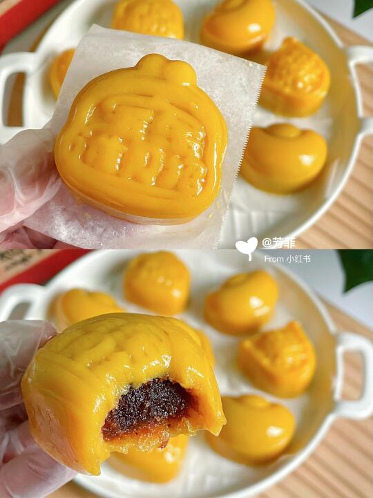 [福R][福R]新年必做的发财南瓜糯米糕来了[派对R]加了南瓜和玉米面,色泽金黄食欲满满!夹馅用了山楂馅,糯叽叽酸甜可口好吃不腻。。