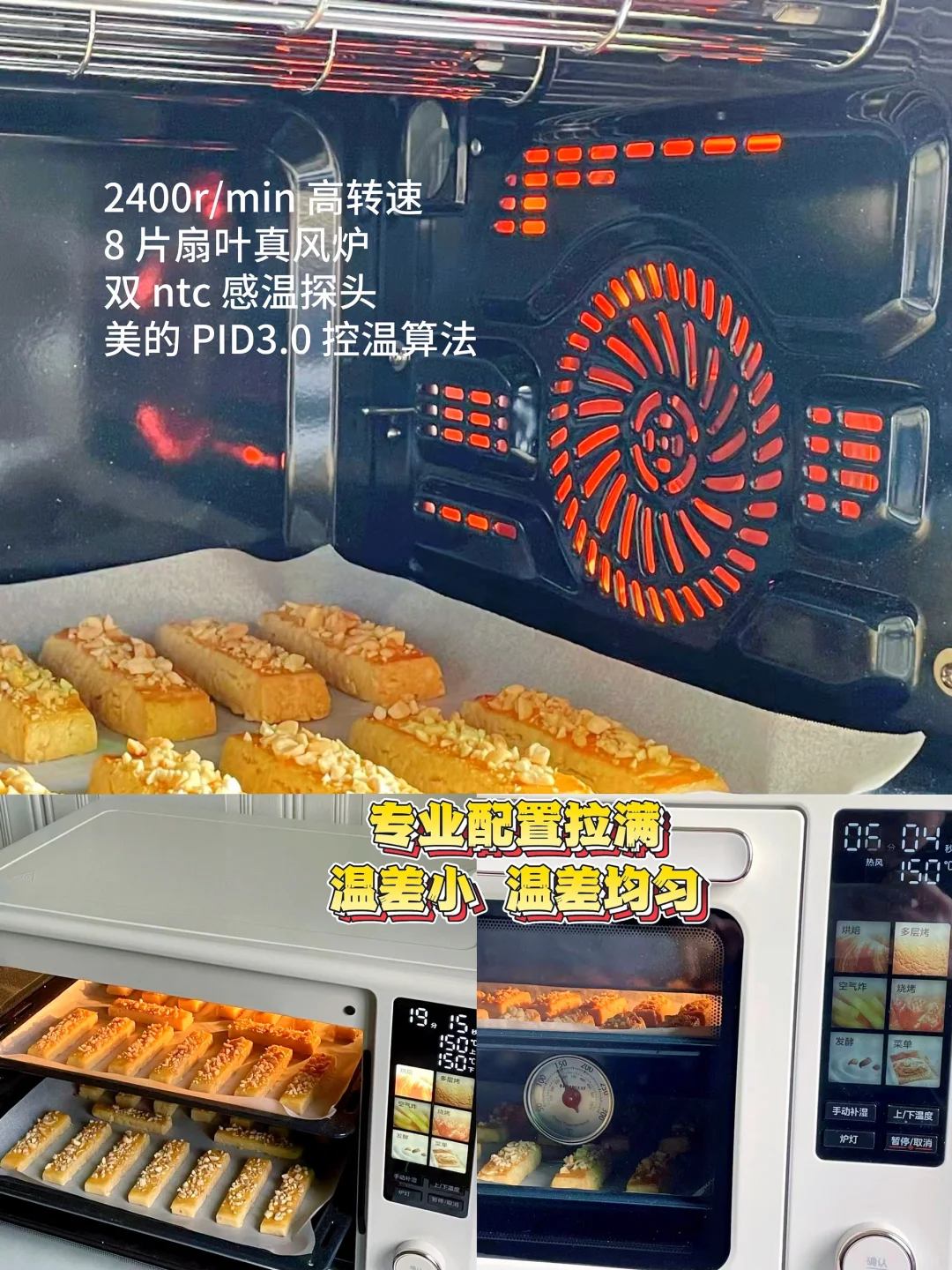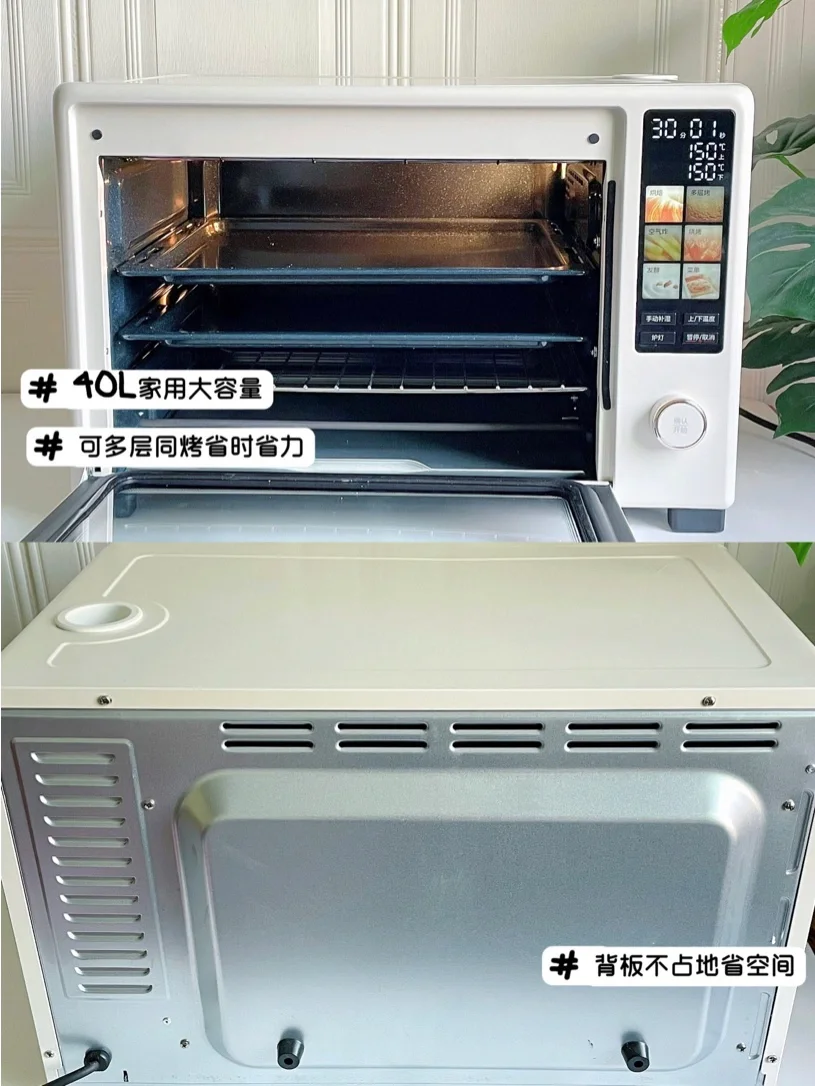 🌈之前就分享过美的小贝壳烤箱的使用心得,他们家出了升级款,不管是配置还是功能都更全面了。今天带小伙伴们👯了解一下美的小贝壳2.0烤箱,看看实测效果如何! 👉🏻这款升级版的小贝壳2.0外观仍然是奶白色的温馨家居风格,水盒在顶部的右侧。 烤管仍然是美的招牌石墨烯材质,开机0.2s即热快速升温,免预热烘焙; 🐾还升级了水雾补湿烤功能,自带手动和自动模式,不管是新手还是资深玩家都能拿捏欧包。 ♨多层烤一样在线出色,侧面真风炉+40L大容量+双烤盘配置,双层匀温烤完全没问题。 内置NTC双感温探头+美的PID3.0控温技术,实实在在做到精准控温温差小的效果,烘焙不用担心翻车。 🌟可以连接一键启动本地菜单,联网后还有海量云食谱,小白跟练完全不用担心难磨合。还能直接用手机操控烤箱,一键调温、预约或定时,智能体验感up。 🌟四面雪花搪瓷内胆,硬度高耐磨耐腐易清洁;加厚防爆玻璃门安全系数高,可任意角度悬停。 🌟大彩屏➕旋钮联动使用,图文并茂清晰明了,一看就会操作。 ⊳做了全麦软欧包,二发用发酵功能32℃发酵约40分钟至1.8倍大。欧包要求高温入炉条件,石墨烯烤管快速升到高温的特性,让烤箱烤欧包也不用预热,直接入炉,烘焙模式,上下火200℃烘烤18~20分钟。入炉后手动补湿喷两次喷雾,不得不说这喷雾水汽蛮均匀的,出炉上色匀称外脆里软口感极佳 ⊳还用它烤了两盘花生酥,免预热,多层烤模式,150℃烘烤25分钟出炉,上色金黄成品酥香掉渣食欲满满 ⊳最后试了下三层同烤果干,免预热,多层烤模式,110℃烘烤约一个半小时,香甜酥脆果香四溢,轻松实现果干自由零添加比买的还好吃 💕💕总的来说,这款烤箱作为家用角度出发,算比较全能型。 ✨能补湿烤能空炸能风干能发酵,还能烹饪烧烤等;操作也是简单明了一用就会。 ✔最关键的颜值在线还能手机智控,目前千元有这些配置的烤箱选择真不多,家用烤箱选它妥妥的秒变烘焙小能手哈哈~