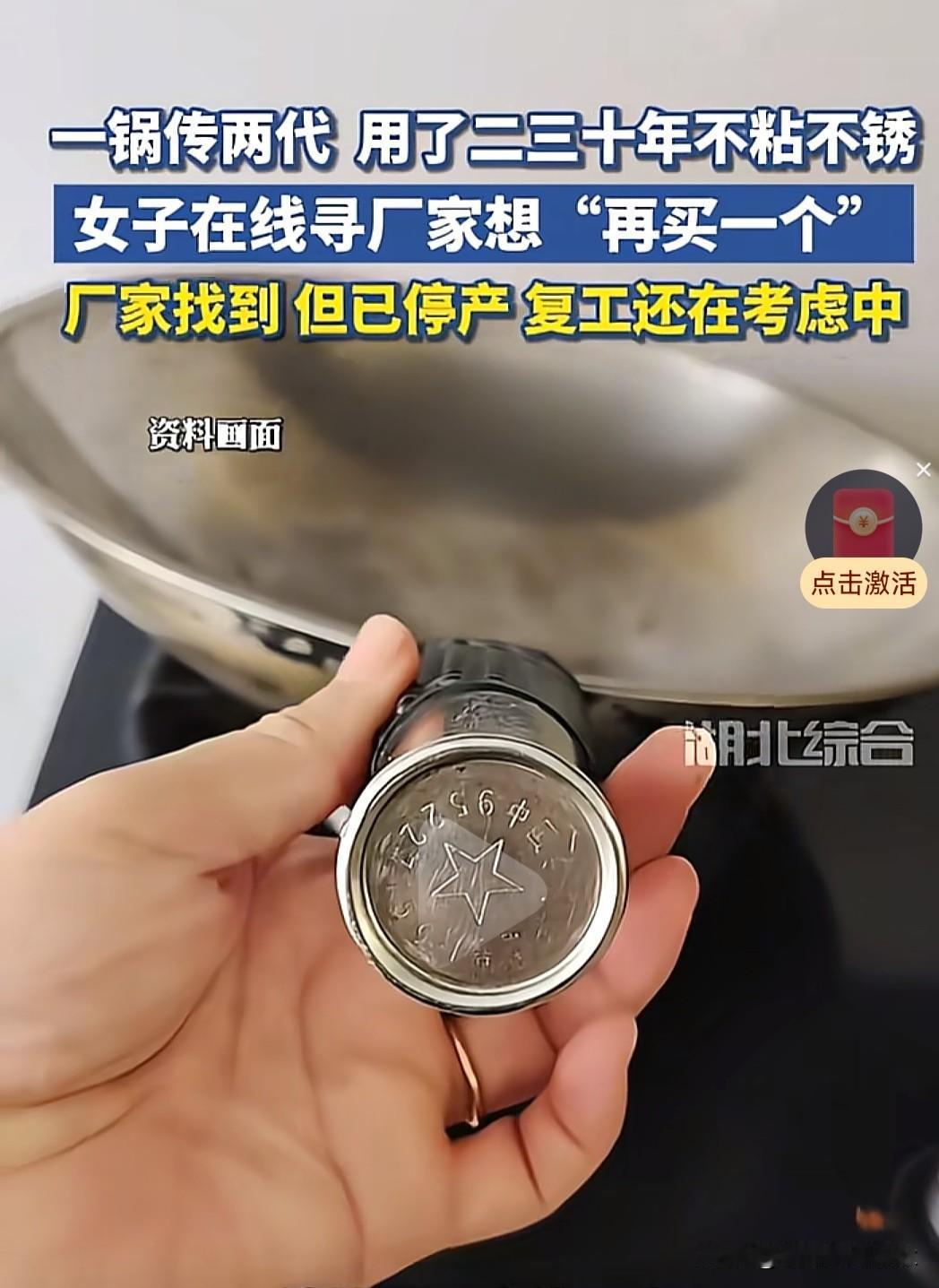 厂家你还在吗?女子在线寻找用了20多年的不锈不沾祸生产厂家,没想到多能的网友帮找到了,更多网友想蹲一个,厂家正在紧急研究复工。 近日,一女子网上发视频寻找锅的生产厂家引发关注。该锅是她婆婆用了约20年,传到她手上也用了将近10年,锅底变薄了,女子想换口同样品牌的锅,但找遍线上线下都没钱到,于是将该锅的视频发到网上,被万能的网友给找到了。 别看这口锅用了近三十年了,一点不生锈不粘锅,通体还透亮。虽然手柄处的厂家字体被磨擦得难以辨认,但一颗五星依然很闪眼。 万能的网友根据仅有的信息还真找到了生产厂家——浙江温州瑞安五星铁锅厂。 有网友也晒出了同款铁锅,从他出生用到现在,从厨房小白用到啥菜都会,最严重的一次失误将锅底烧红了,至今还是完好。 锅厂老板傅先生说,没想到20来年前的铁锅能得到这么多人的好评,非常高兴,非常感谢,当年因销路不好,这款锅的生产线早已停了,复工正在考虑中。 锅厂也与女子取得了联系,说厂里正在开会研究重开生产线。 许多网友都艾特女子,厂家锅生产出来了,一定记得告诉大家,因为想买一口好锅太难了。现在的锅少则上百元,多则上千元,效果与之前的锅相差甚远。 大家记得吗?前几年,网友盘活了洗涤界老品牌——活力28,物美价廉。瑞安五星铁锅又将王者归来。 为什么以前的老品牌那么经用,因为那个年代的人实诚,真是拿良心办企业。而现在是人是鬼都办企业和小作坊,很多无良商家偷工减料加入竞争,扰乱了企业良性秩序,使真正的好企业撑不下去了。 有网友晒出了40年的塑料盆,28年的电风扇,16年的吹风机,10年的充电宝等,都在正常使用,很多都找不到生产厂家了,质量杠杠的,却被商海淹没,太可惜了! 好的东西就应该分享,让更多的人知道,让厂家有信心,有底气做大做强,让民族品牌王者归来是我们消费者的责任,让每一份对国货的信任都转化为品牌成长的力量。