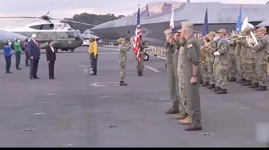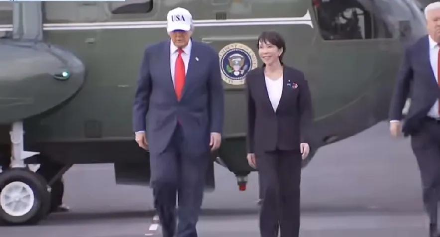 特朗普是真把日本当自己家了,一点不拘束,在人家地盘上,给自己安排好了行程! 不仅开着自己的“陆战队一号”直升机,带着高妹子,满城兜风,还把直升机停在了开进东京湾的航母甲板上,检阅自己的部队,并为高妹子举办了一场“就职庆功会”,夸赞高妹子是前无古人的好首相,高妹子全程受宠若惊! 客人到自己家如此放肆,日本竟然能选择逆来顺受,属实是可悲又可怜!