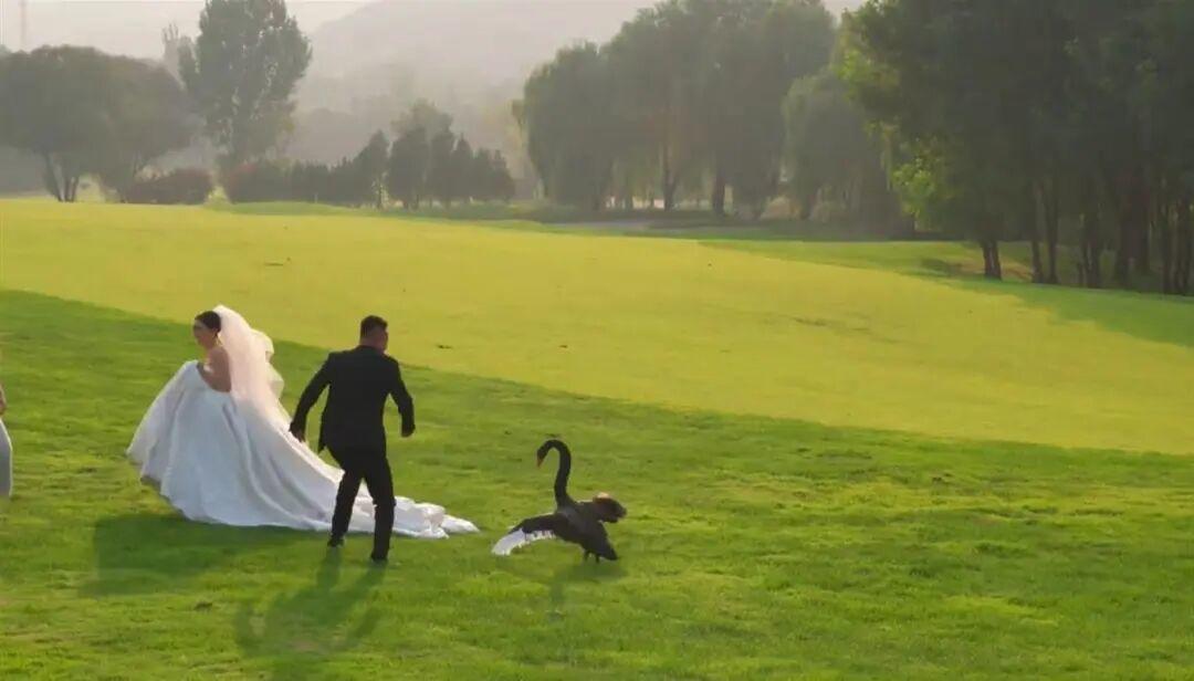 济南新郎婚纱照上演“人鹅大战”!手捧花当武器护新娘,网友:这婚结得值 谁拍婚纱照还没点小插曲?补妆补到脸僵、裙摆卡进草缝、摄影师喊“再来一遍”到嗓子冒烟……这些都算常规操作。可济南的孙先生夫妇,直接在拍摄现场解锁了“黑天鹅抢亲”的史诗级名场面,看完视频我直接笑到打鸣,这哪是拍婚纱照,分明是拍《动物世界》番外啊! 事情得从10月26号下午3点说起,孙先生和新娘换好婚纱礼服,跟着摄影师、化妆师一行人,美滋滋地跑到济南长清区的草坪上准备拍照。你想啊,秋日暖阳洒在草坪上,新娘穿一身洁白婚纱,裙摆拖在草地上像撒了把碎月光,孙先生西装笔挺,手里攥着捧花,嘴角的笑就没下来过——换谁要娶心上人了,不得美得飘起来? 结果镜头还没对准呢,意外先来了。远处一只黑天鹅突然“失控”,扑腾着翅膀就往这边冲,目标明确:直奔穿白婚纱的新娘!孙先生后来回忆的时候还心有余悸:“那天鹅老大了,直立起来快跟人差不多高,当时我脑子‘嗡’一下,第一反应就是‘坏了,这玩意儿要干啥’!” 你别说,这黑天鹅还挺有“审美”,放着西装革履的新郎不看,一门心思追着白婚纱跑。估计它在湖里待久了,从没见过这么大块“会动的白云”,好奇心一上来就不管不顾了。新娘当时吓得往后躲,摄影师手里的相机都忘了按,化妆师更是攥着粉扑瞪大了眼——谁见过这阵仗啊,拍婚纱照还得防“禽类情敌”? 关键时刻,孙先生的“新郎力”直接拉满。他也顾不上害怕了,脑子里就一个念头:“这是我媳妇,可不能让天鹅给‘拐’走了!”他一把举起手里的捧花,跟举着盾牌似的,对着黑天鹅挥了挥,还故意抬了抬脚,装作要“反击”的样子。你还别说,这招真管用,黑天鹅大概是被捧花的颜色晃了眼,又看见新郎“来势汹汹”,扑腾了两下翅膀,居然真的掉头走了。 等黑天鹅走远了,孙先生才敢松口气,低头一看,自己手心都出汗了,捧花的花瓣都被挥掉了两片。新娘又好笑又感动,拉着他的手说:“你刚才跟‘打怪兽’似的,也太勇敢了!”摄影师这时候才反应过来,赶紧把刚才的画面倒回去看,笑着说:“你们俩这花絮比正片还精彩,绝对是独一份的婚纱照记忆!” 后来这段“人鹅大战”的视频被发到网上,直接火出了圈。评论区里网友们的留言快把人笑晕了:“这黑天鹅是来抢婚还是来送祝福的?说不定是想当伴郎呢!”“孙先生这捧花没白买,不仅能求婚,还能当‘防鹅神器’,性价比拉满!”还有网友脑洞更大:“建议这对新人把黑天鹅加进婚礼感谢名单,毕竟它贡献了最特别的‘婚前考验’!” 也有不少网友想起了自己拍婚纱照的经历,在评论区分享:“我拍婚纱照的时候,被蜜蜂追着跑,新郎护着我躲进花丛里,最后照片里全是我们俩的‘表情包’!”“我当时拍海景,一个浪打过来,婚纱全湿了,新郎抱着我往岸上跑,现在看照片还觉得又好笑又温暖。”原来大家的婚纱照里,都藏着这样那样的小意外,可正是这些不完美的瞬间,反而成了最难忘的回忆。 孙先生说,一开始还担心这段小插曲会影响拍摄心情,没想到最后成了最特别的纪念。现在再看那天的照片,虽然有几张里他的表情还带着“没缓过神的紧张”,但每一张都充满了烟火气,比那些摆拍的完美照片更有意义。“以后跟孩子说起来,还能骄傲地说‘你爸当年为了护着你妈,跟黑天鹅过过招’!” 其实啊,爱情不就是这样吗?不是永远风平浪静,而是遇到意外时,有人会第一时间站在你面前,哪怕自己也害怕,也会握紧你的手,替你挡住所有“不速之客”。就像孙先生举起捧花的那一刻,那不是什么惊天动地的壮举,却藏着最朴素的温柔——我或许不是无所不能,但我一定会拼尽全力保护你。济南 黑天鹅
