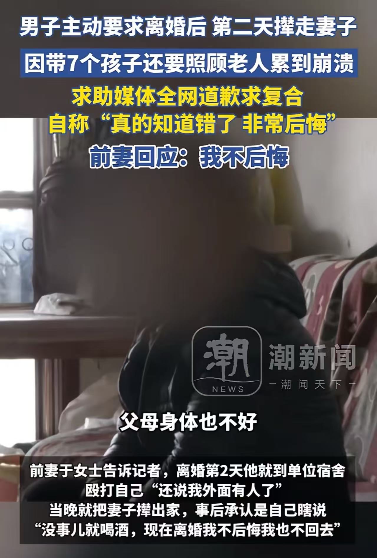 河南郑州,男子主动要求离婚后,因带7个孩子还要照顾老人累到崩溃,全网道歉“求复合”!男子:“老婆,我真的知道错了,非常后悔!”前妻回应:我不后悔!网友:他不是后悔了,他是没有免费保姆了!