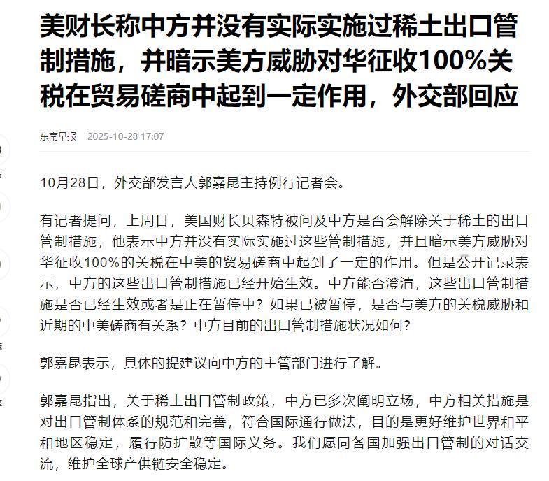 真是改不了本性,美国人又出尔反尔了! 中美代表团刚刚在马来西亚吉隆坡结束了第四轮谈判,双方已经谈成了一个框架,即将走国内审批的流程。 没想到一转头,美国财长就通告全球:“美国不会改变针对中国的出口管制措施。” 这就是美国,这翻脸速度比翻书还快,简直把 “出尔反尔” 四个字焊在了自己脑门上。 其实这压根不算新鲜事,美国人这套操作玩了快十年了,早就是老传统了。2018 年中美刚开贸易战时就有过经典表演,当时双方在北京、华盛顿来回谈了好几轮,美国财长姆努钦都公开说 “接近达成协议”,还承诺不会再给中国企业施压。 结果才过俩月,特朗普政府就单方面撕毁谈好的内容,直接对 340 亿美元中国商品加征 25% 的关税,把 “承诺” 当成了擦桌布。 2019 年更离谱,中日大阪会晤刚说好重启磋商,八月份就又宣布对 3000 亿美元商品加税,后来还把税率提到 15%,把谈判当成了过家家。 到了科技领域,这种出尔反尔更是变本加厉。2019 年把华为扔进实体清单时,说只是 “审许可”,结果 2020 年就改规则,连台积电这种用了美国设备的企业都不让给华为供货。 2025 年 3 月中美刚有谈判苗头,美国商务部转头就把 54 个中国实体加进清单,说它们搞 AI、超算 “威胁安全”,其中 12 家当天就生效限制。 更讽刺的是 5 月份,一边跟中国谈稀土和 EDA 软件的让步,一边又发指导意见,说全球谁用华为的 Ascend AI 芯片都可能违法,最高能判 20 年监禁,罚款 25 万美元,把 “两面三刀” 玩得炉火纯青。 数据更是戳破了美国的虚伪。有机构算过,特朗普第一任期内,中国被加进美国制裁名单的组织和个人,是之前四届政府的三倍。拜登时期没收敛,2022 到 2024 年两年里,被拉进实体清单的中国实体涨了 85%,特别指定国民清单里的数量更是翻了一倍多。 特朗普今年二进宫后更夸张,才半年就净增 89 家中国实体进实体清单,光二季度三个月就多了 71 家,一边谈合作一边递刀子的本事越来越熟练。 就连国防预算这种大事,2025 年 2 月特朗普还说要跟中美俄达成协议 “把国防预算减半”,俩月后就炫耀新预算接近 1 万亿美元,比上年涨了 12%,比瑞士全年 GDP 还高,自己说的话转头就当没听见。 这次吉隆坡谈判谈的出口管制,美国早就把 “出尔反尔” 刻进了流程里。2020 年签中美第一阶段经贸协议时,美方明明承诺降低部分关税,结果科技管制一点没松,反而逐年收紧。 2025 年 7 月刚取消点软件限制换中国恢复稀土出口,10 月谈判一结束就翻脸说 “不改变管制”,跟 2018 年关税战的套路一模一样。 美国商务部副部长凯斯勒 6 月还在国会听证会上说 “出口管制让华为 AI 芯片年产量顶多 20 万颗”,转头就敢跟中国谈出口管制的共识,这种睁眼说瞎话的本事,也是没谁了。 全球产业链早就被这种反复折腾得够呛。美国芯片企业比如英伟达,2024 年中国营收直接下滑,因为管制让它们丢了大订单,可美国政府根本不管企业死活,该翻脸还是翻脸。 七年贸易摩擦下来,经济成本上千亿美元,美国自己的农民、企业都遭了殃,但出尔反尔的毛病半点没改。 毕竟在他们眼里,规则是给别人定的,自己想怎么来就怎么来,所谓的谈判共识,不过是缓兵之计,等你转身就又是一刀,这种蛮横无理的本性,真是这辈子都改不了了。