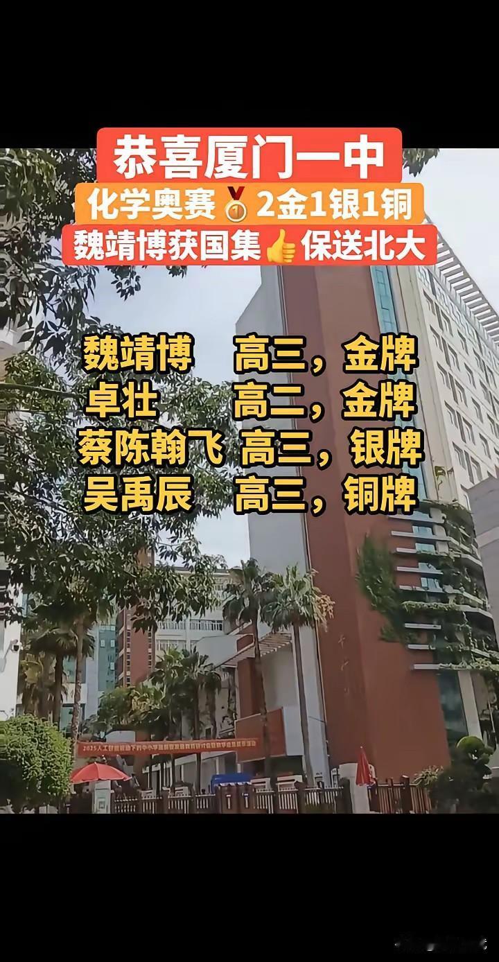恭喜厦门一中化学奥赛2金1银1铜,魏靖博获国集保送北大。[烟花][烟花][烟花]