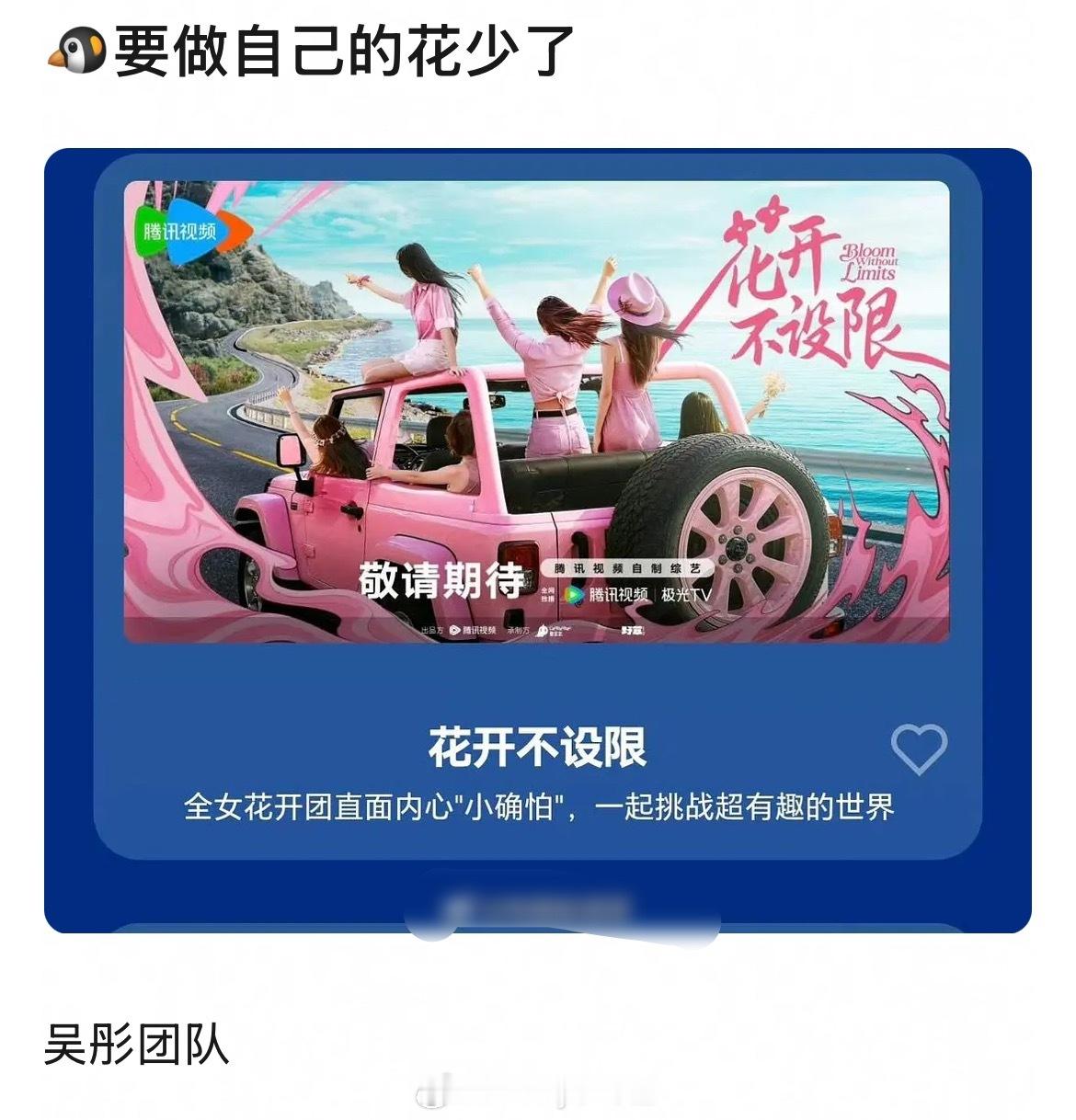 🐧也要做自己的花少了,全女星阵容,不过是吴彤团队,不太妙啊……