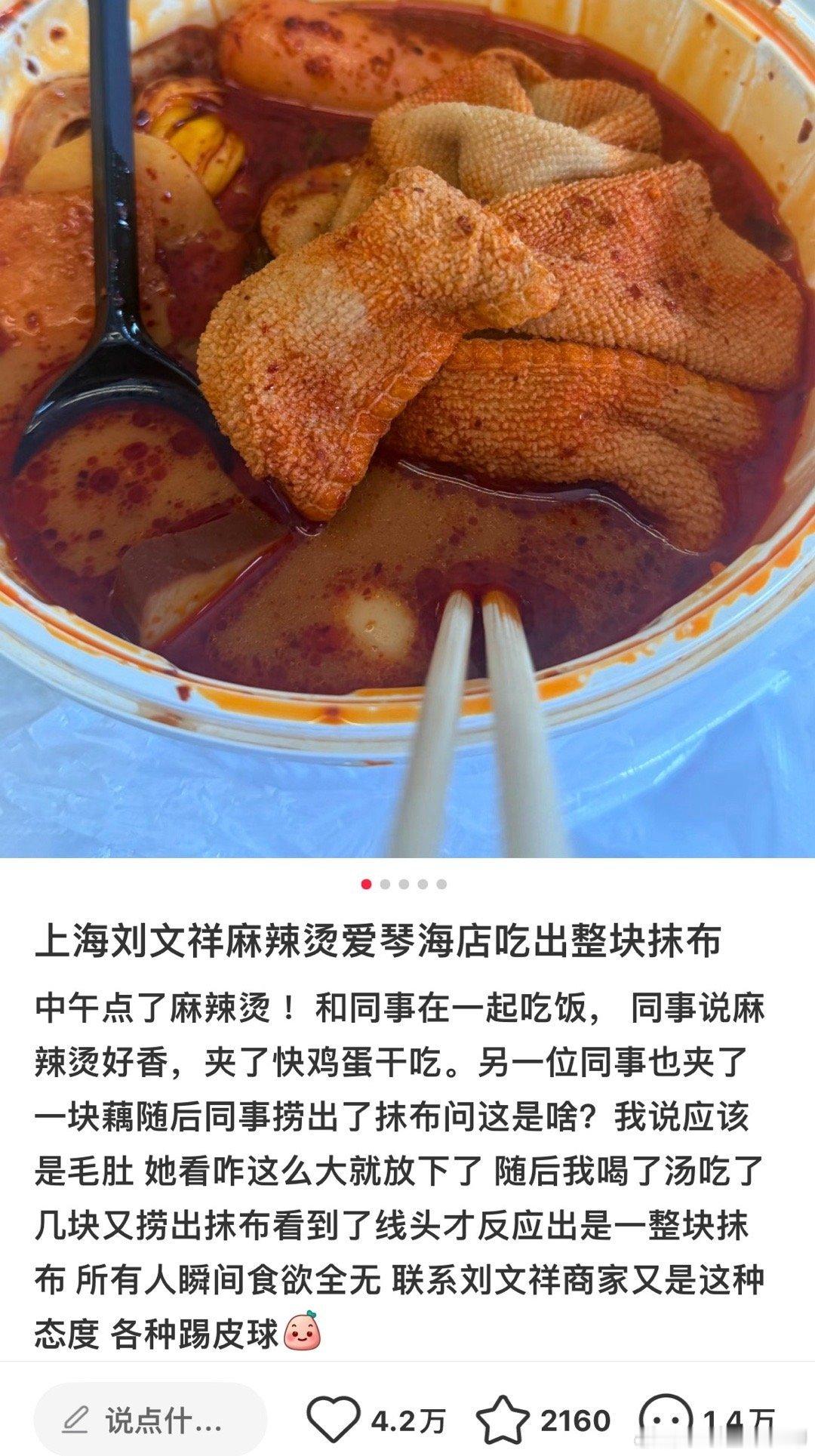 刘文祥吃出整块抹布救了命了[傻眼](只有我觉得刘文祥味道变了吗,好久没点过了[