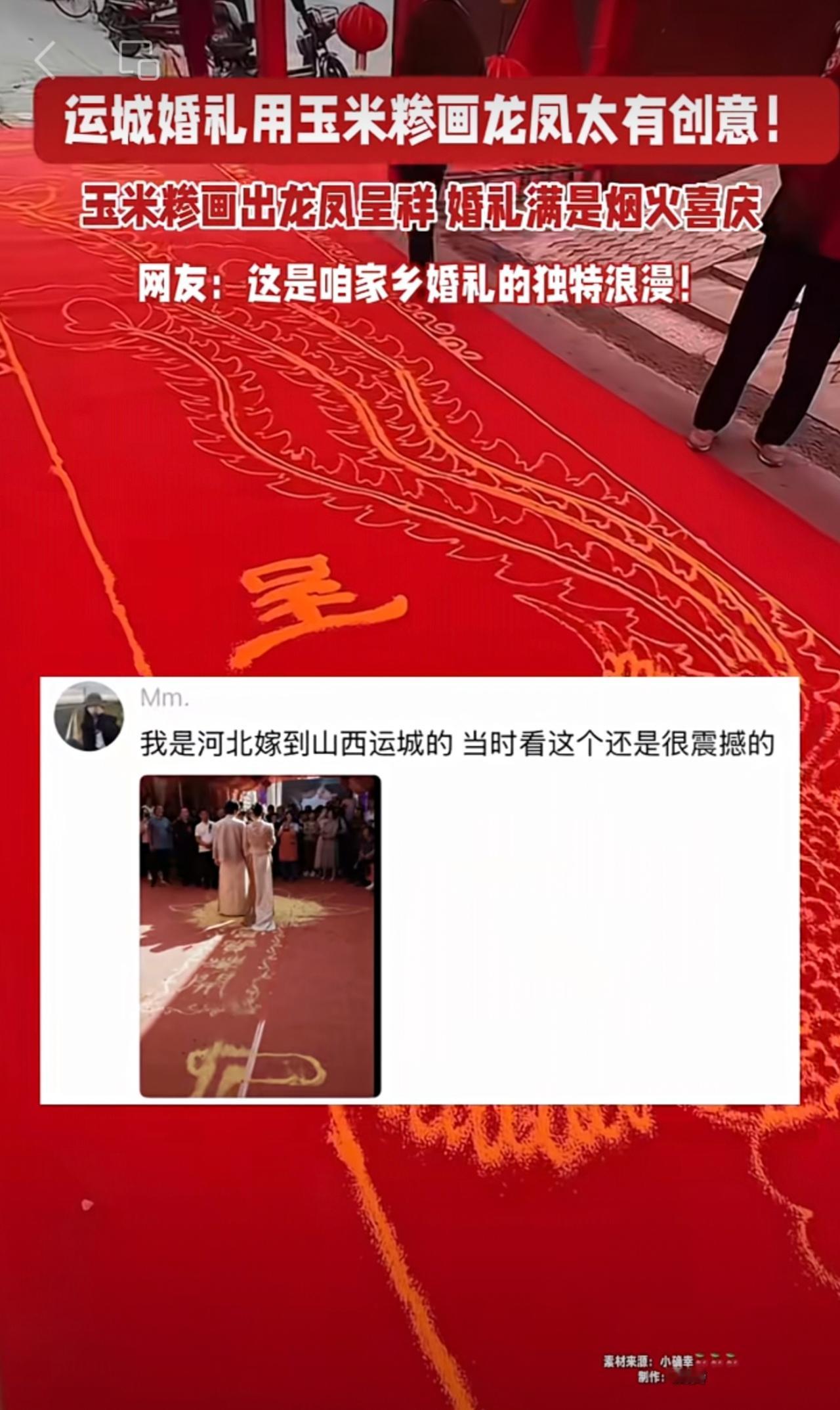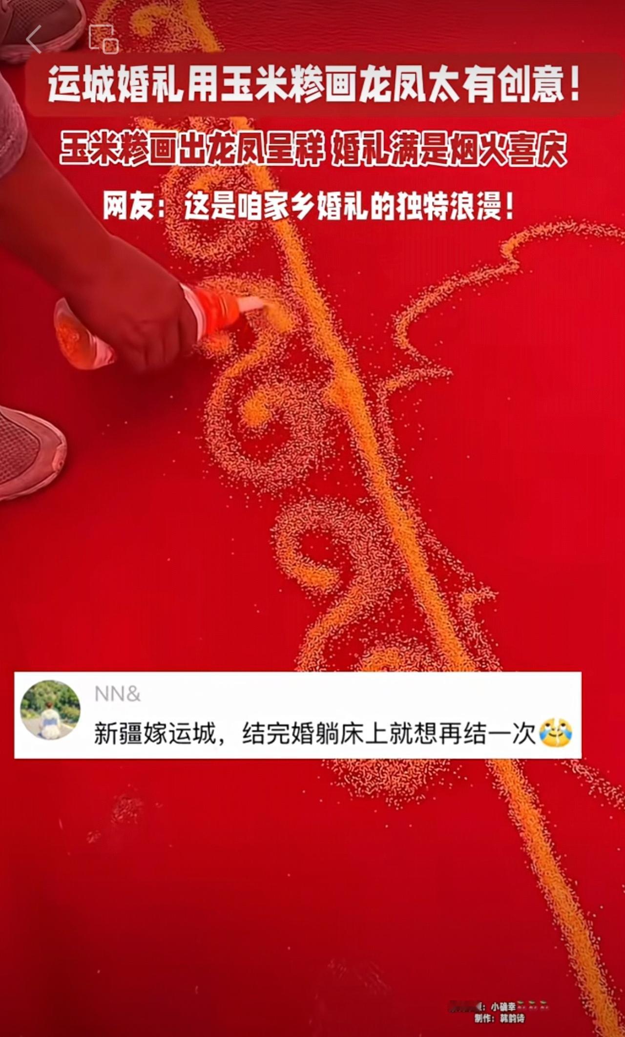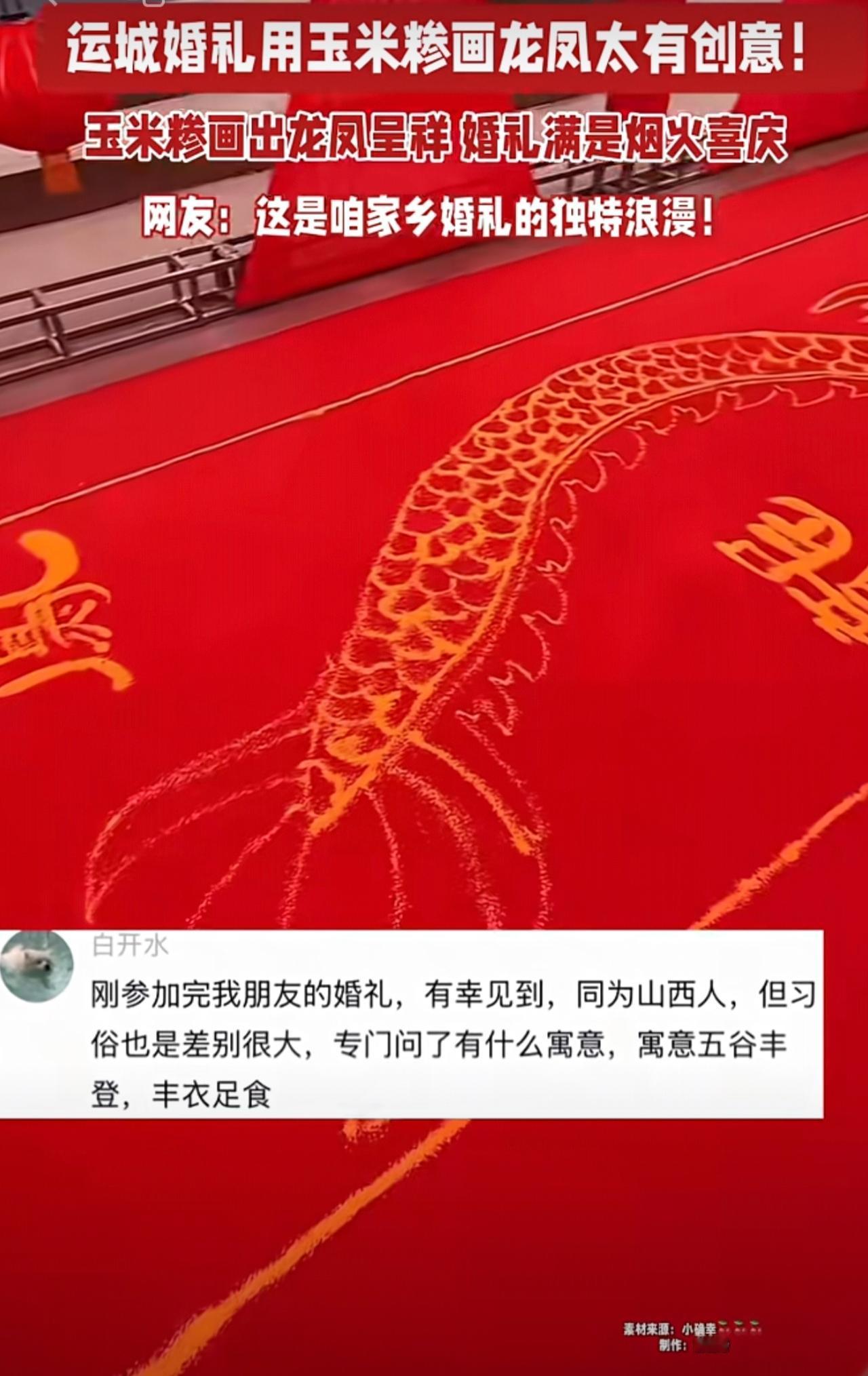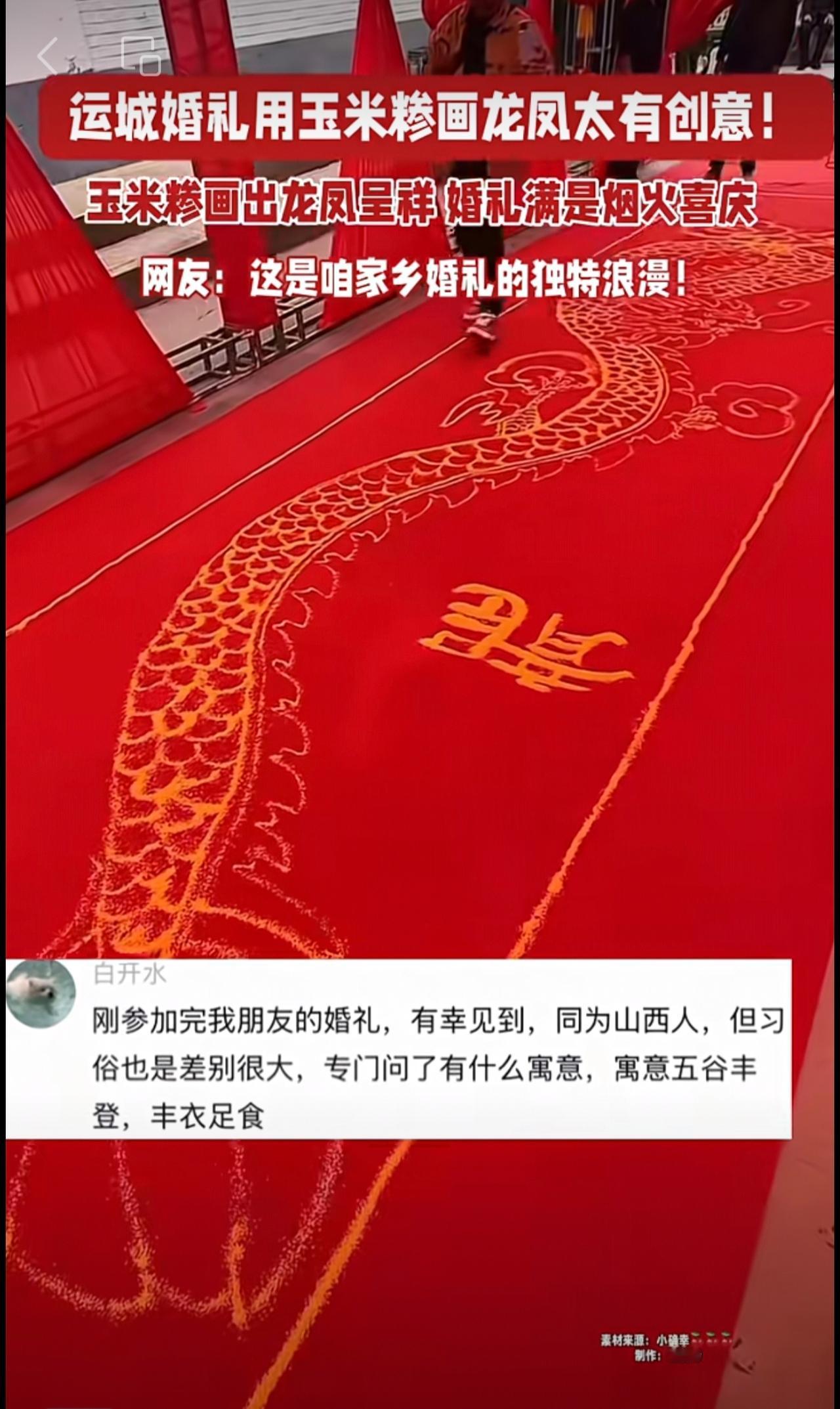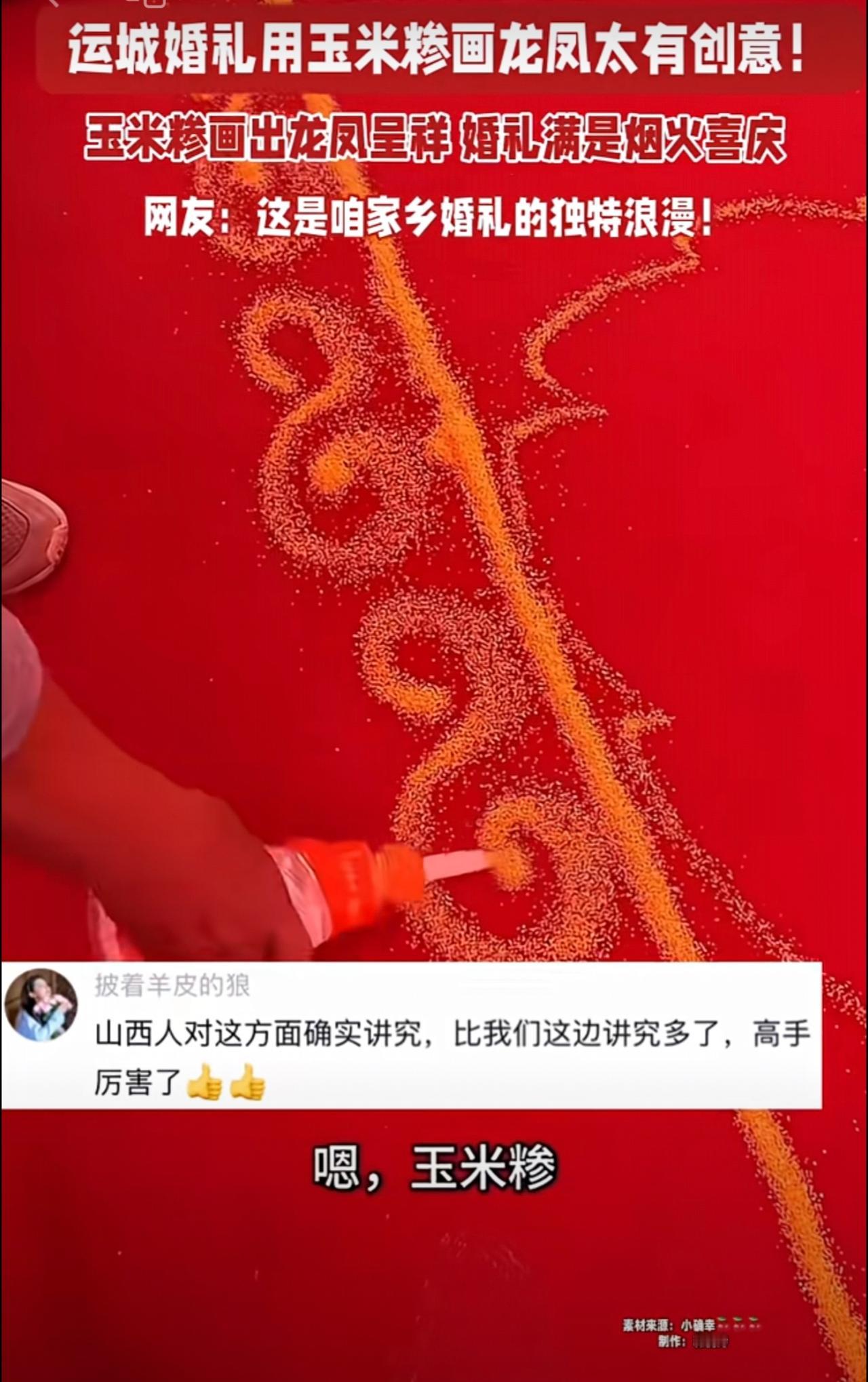 运城婚礼用玉米糁画龙凤太有创意! 玉米糁画出龙凤呈祥 婚礼满是烟火喜庆 网友:这是咱家乡婚礼的独特浪漫!