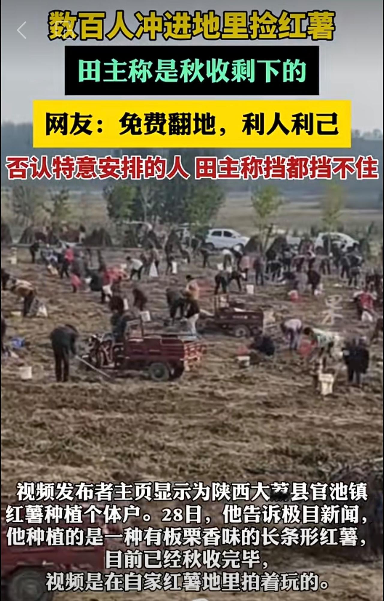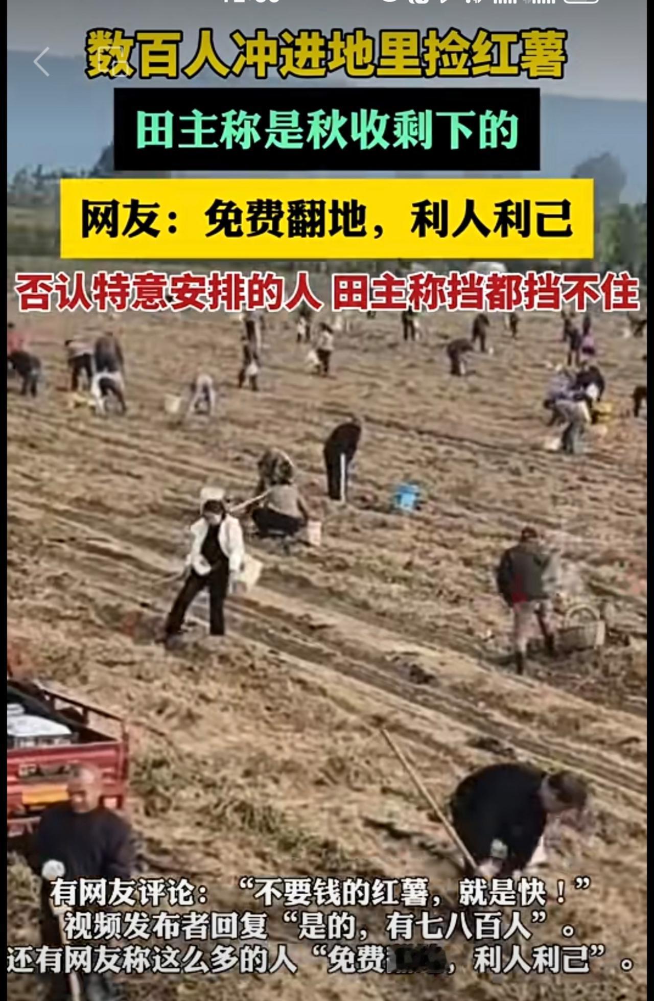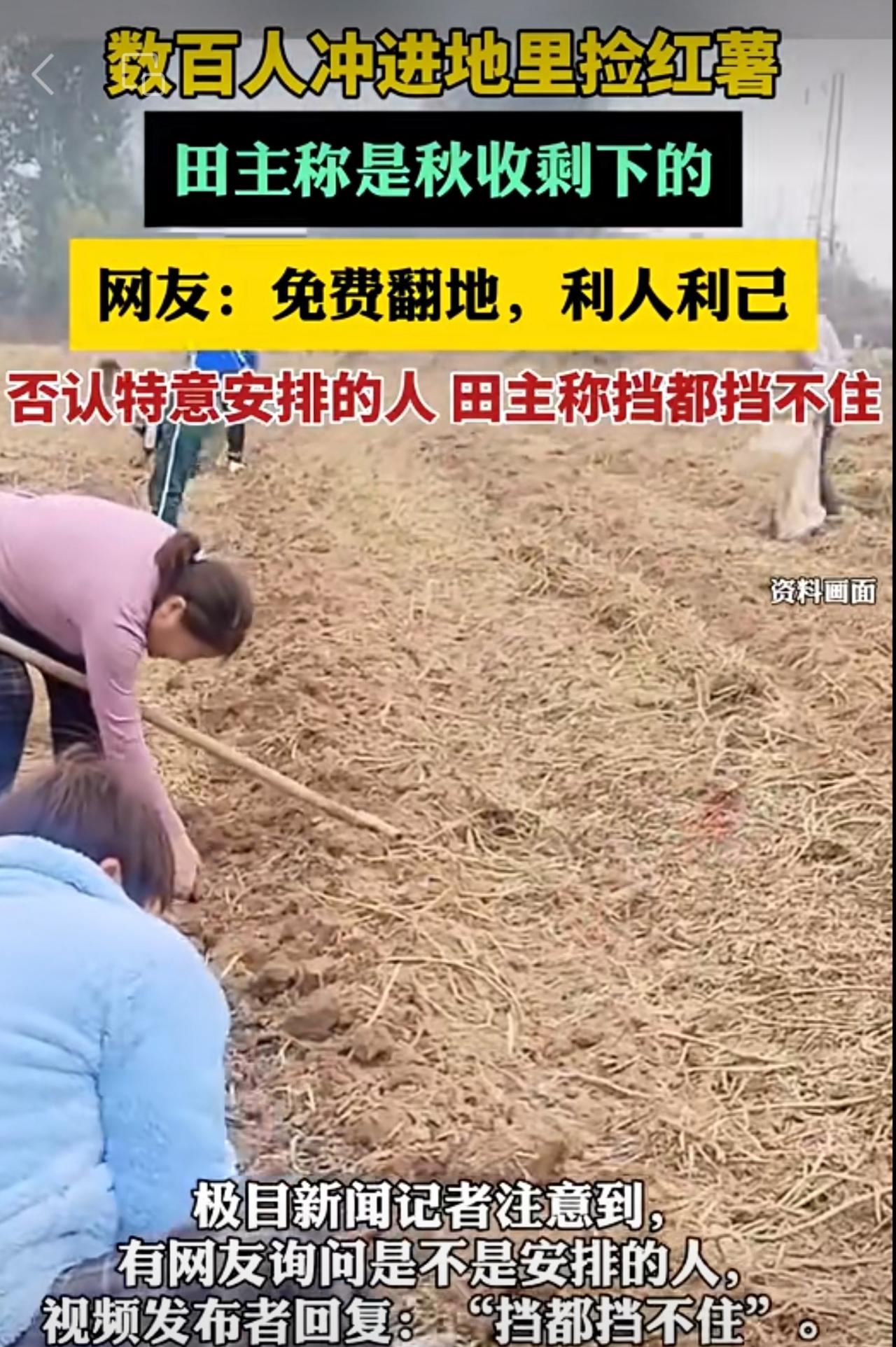 数百人冲进地里捡红薯