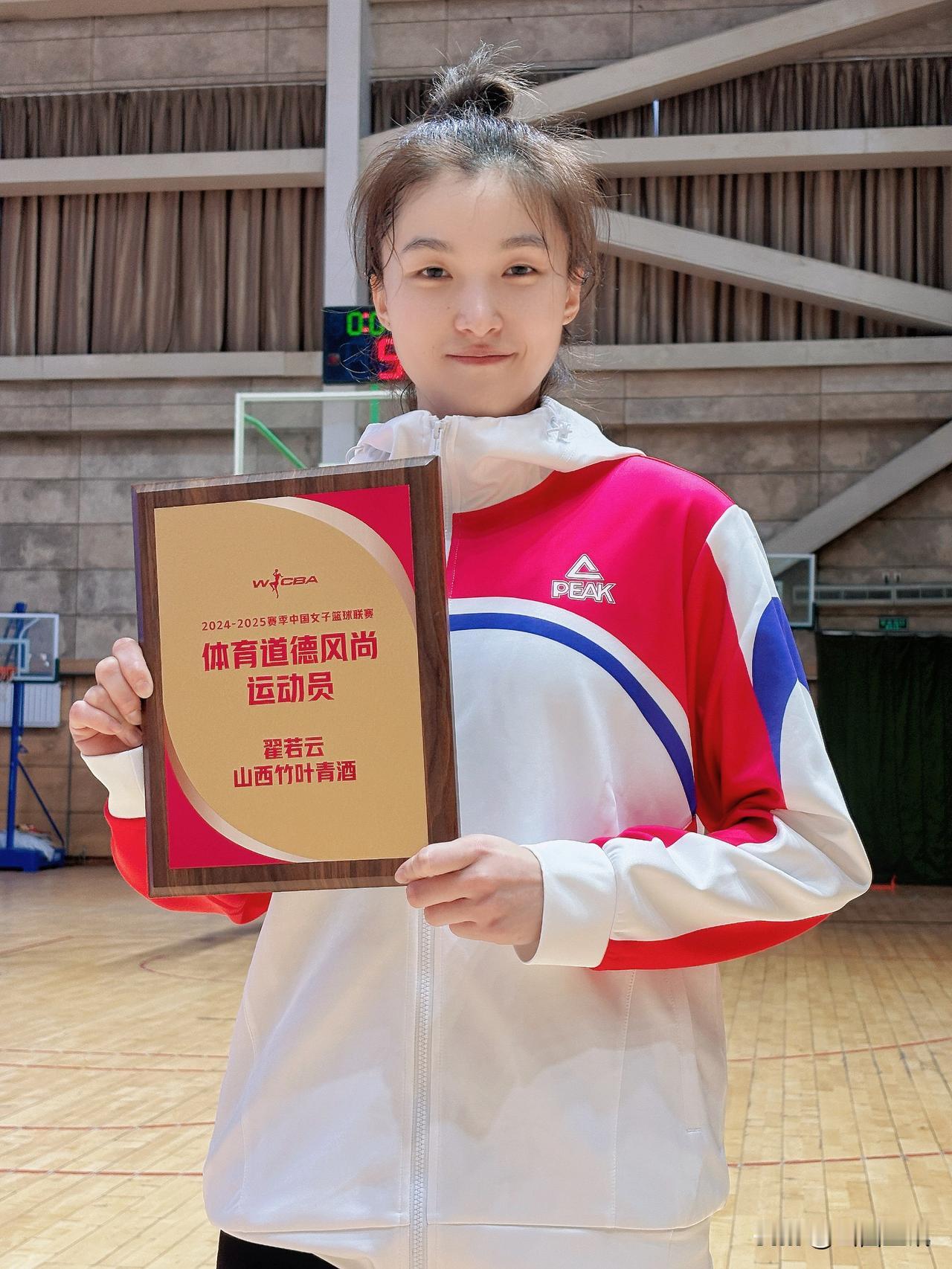 翟若云荣获得2024-2025赛季WCBA道德风尚运动员奖项! 今天,山西竹叶青酒女篮队员翟若云领到了中国女子篮球联赛颁发的体育道德风尚奖牌!这份荣誉是至高无上的,也是中国女子篮球联赛官方对翟若云赛场内外高尚品格的最佳褒奖,更是对翟若云用行动诠释体育精神的充分肯定。翟若云加盟山西竹叶青酒女篮以来,低调做人,高调打球,每场比赛几乎打满40分钟。特别是武桐桐、赵志芳等老将离队后,作为效力球队时间最长的球员,不居功自傲,与新球员一道,把球队带进了常规赛第二、季后赛四强。翟若云的表现引起国家主教练宫鲁鸣的高度关注,并将其吸纳为国家女篮一员。 WCBA新赛季马上开始,翟若云将和队友们一起,带着这份荣光,一如既往地投入比赛,为球迷朋友们带来更多的精彩比赛,为山西篮球事业再做贡献!