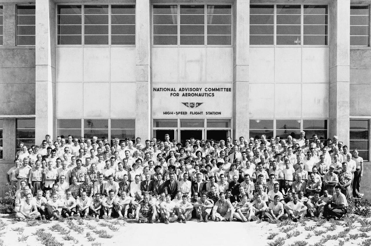 二战期间,一架美国P-51“野马”战斗机停放在NACA机场。 P-51“野马”战斗机(参见图2~3)是二战期间最著名的美国战斗机之一,由北美航空公司研制。其卓越的高空性能与远程续航能力使其成为盟军护航战斗机的典范,尤其在欧洲战场为轰炸机群提供全程护航。 “NACA”全称为“国家航空咨询委员会”(National Advisory Committee for Aeronautics,参见图4),成立于1915年,是美国航空航天研究的核心机构,1958年改组为现今的“美国国家航空航天局”。该机构下属的兰利机场等试验基地承担了大量飞行器气动性能测试工作。